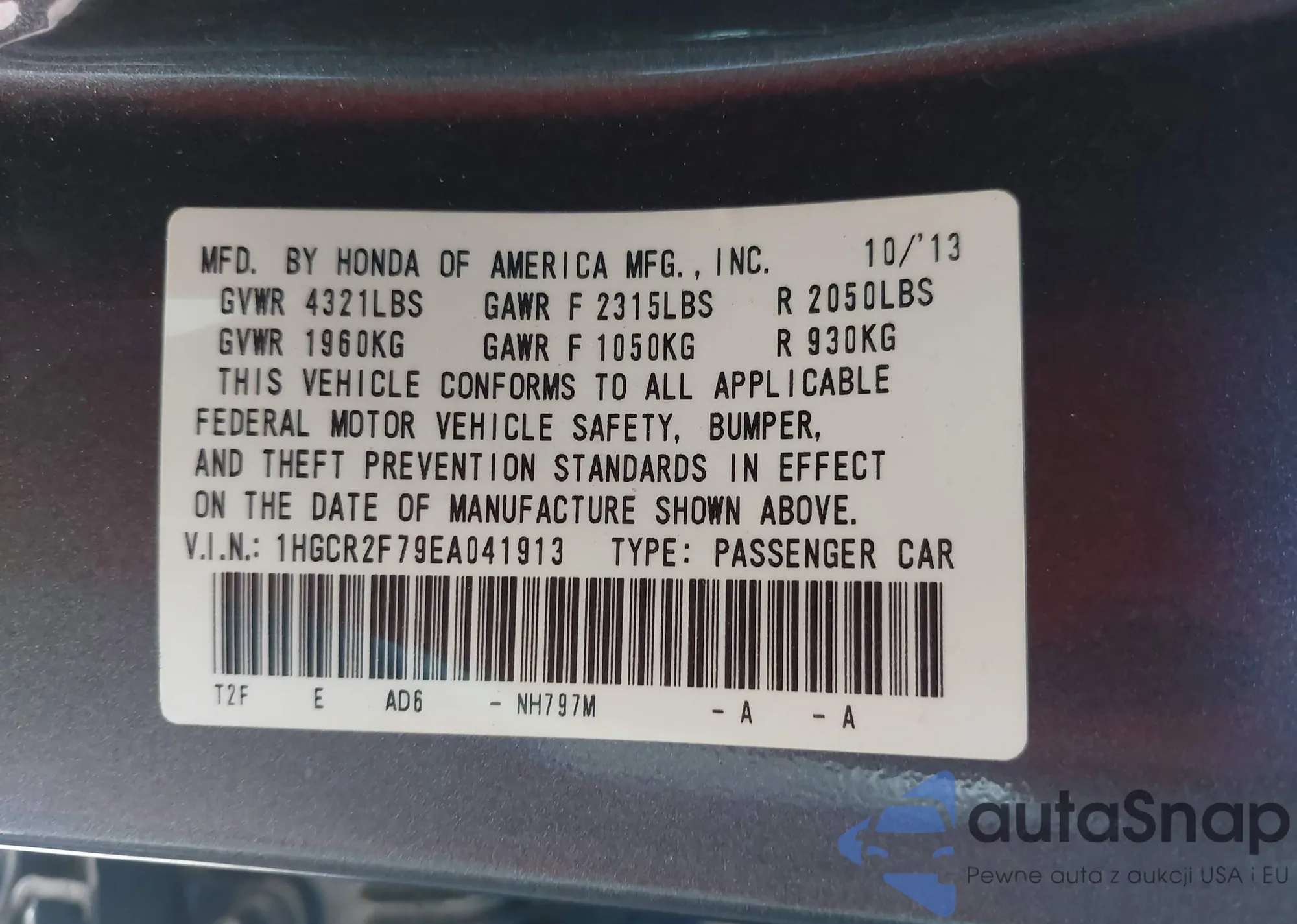 • VIN 1N4AA5AP7EC479765
