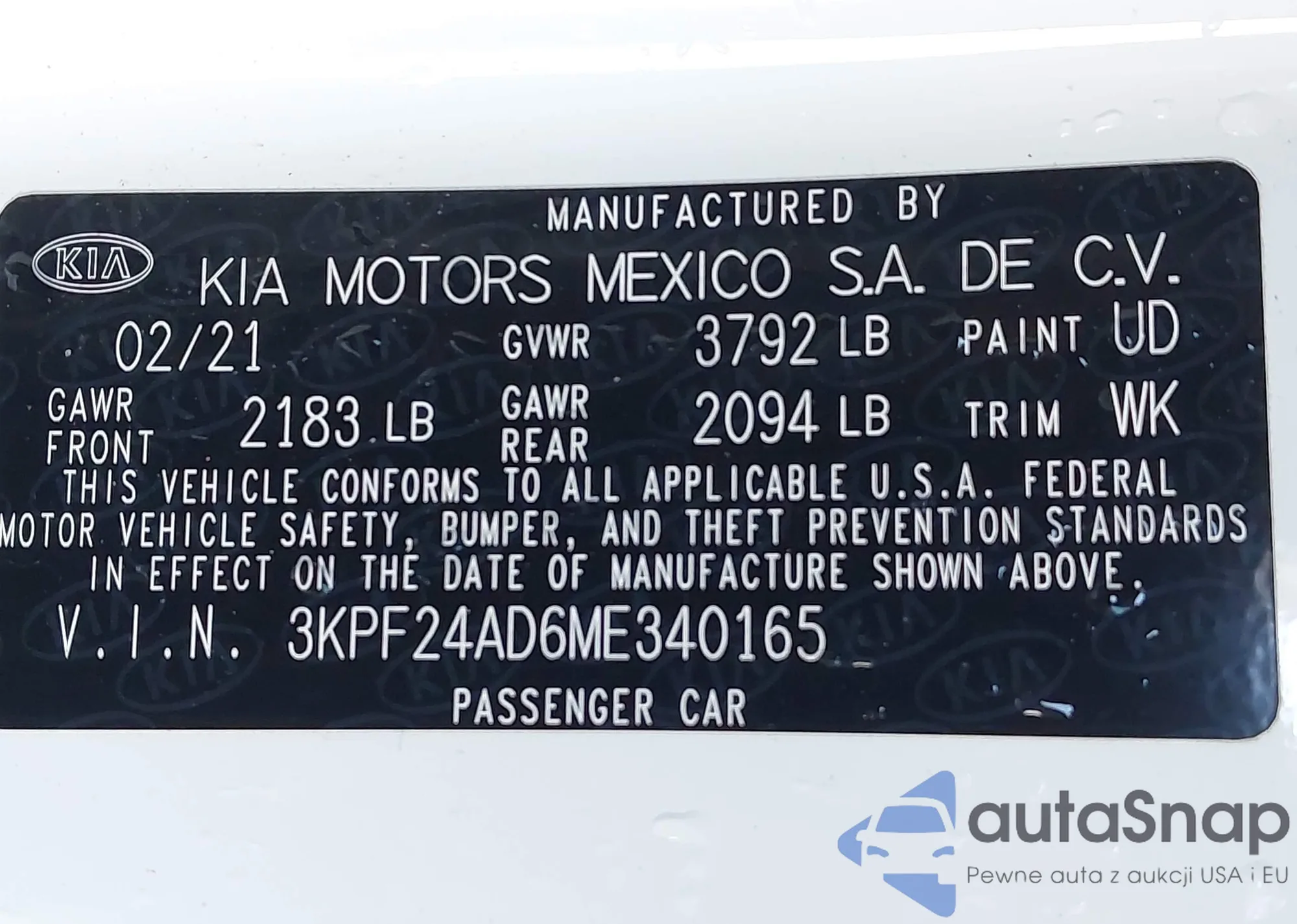 • VIN 3KPF24AD6ME340165