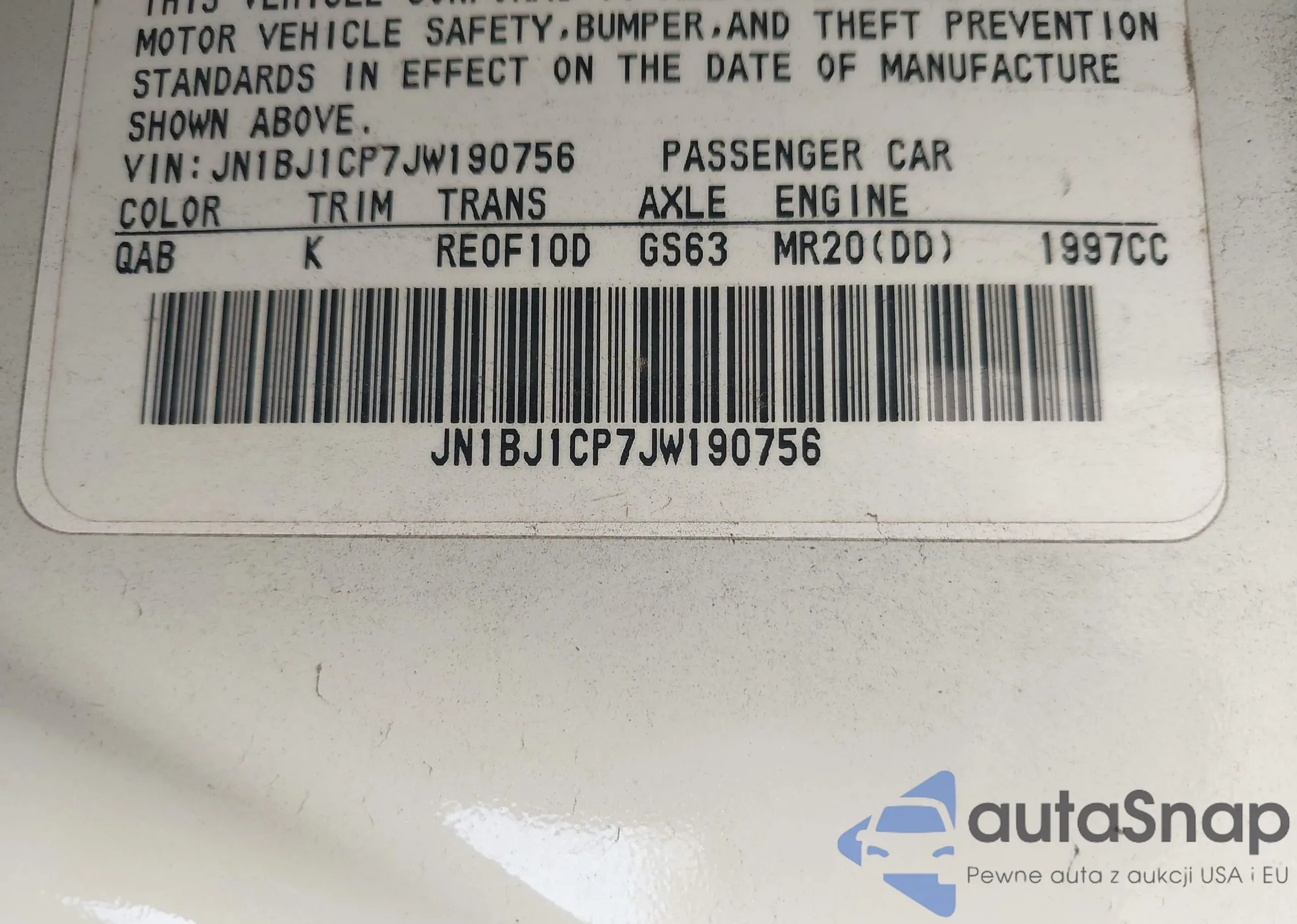 LOT: 44235032 VIN: JN1BJ1CP7JW190756