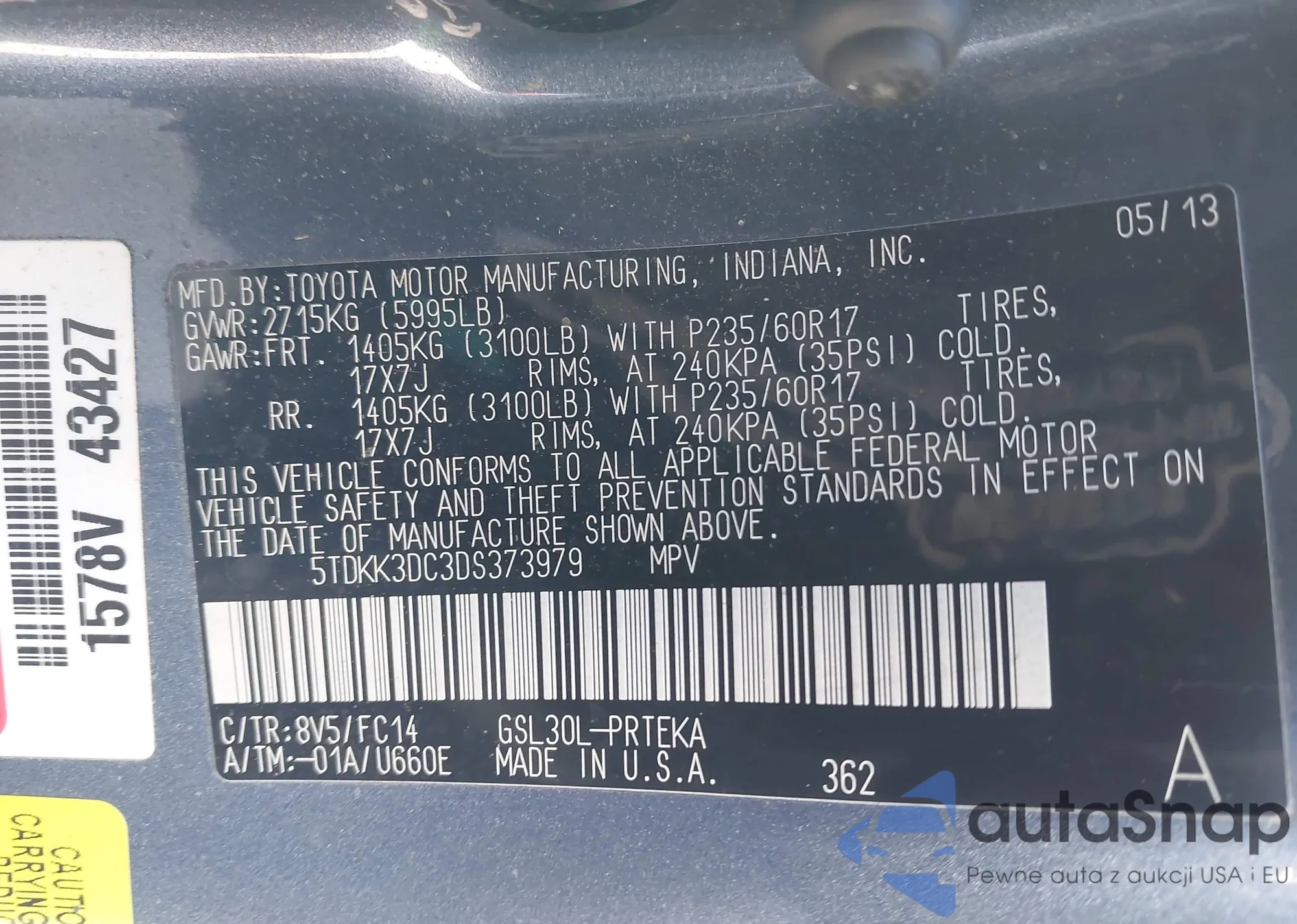 • VIN 5TDKK3DC3DS373979