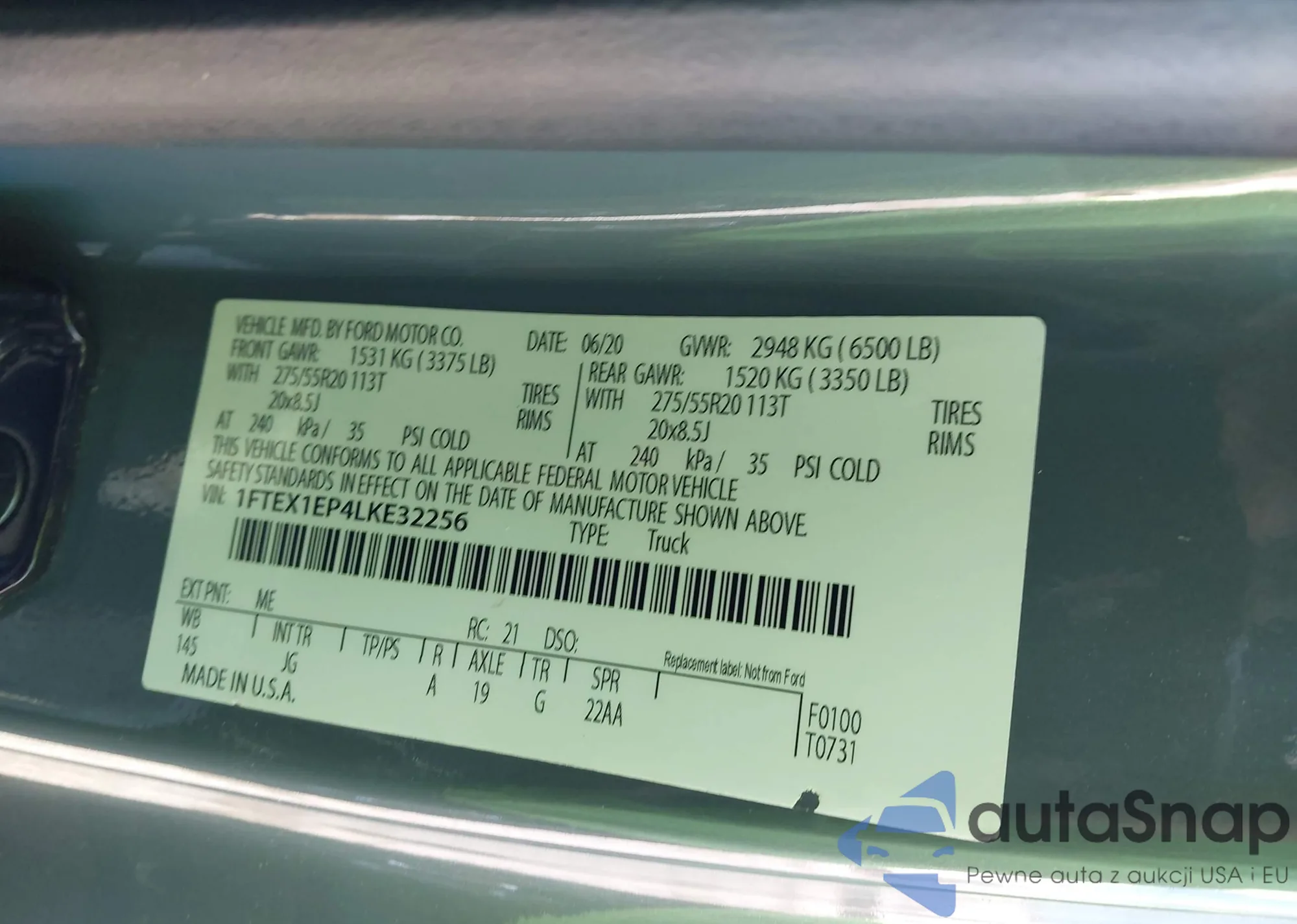 • VIN 1FTFX1EF9DFC68668