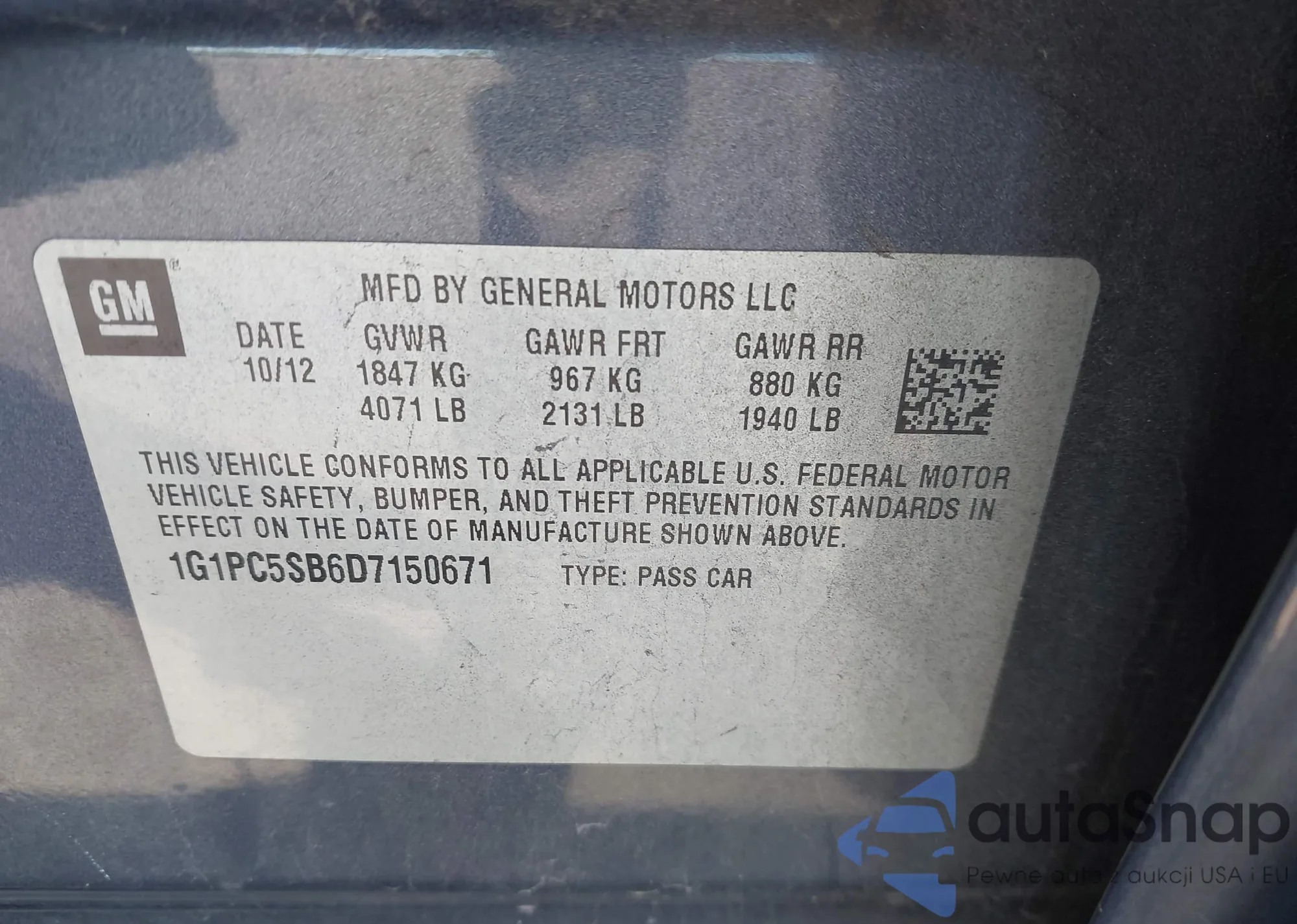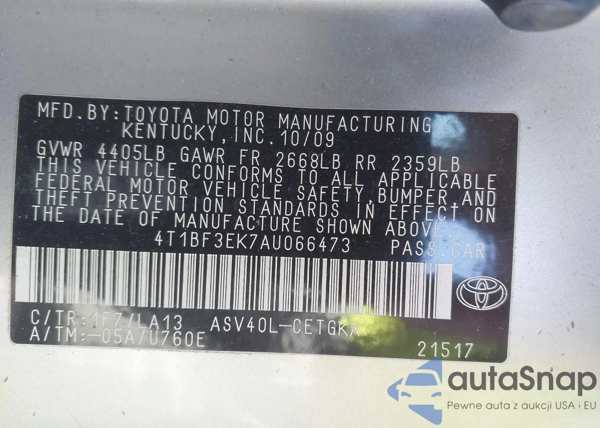 LOT: 44200769 VIN: 1HGCP2F37CA056636