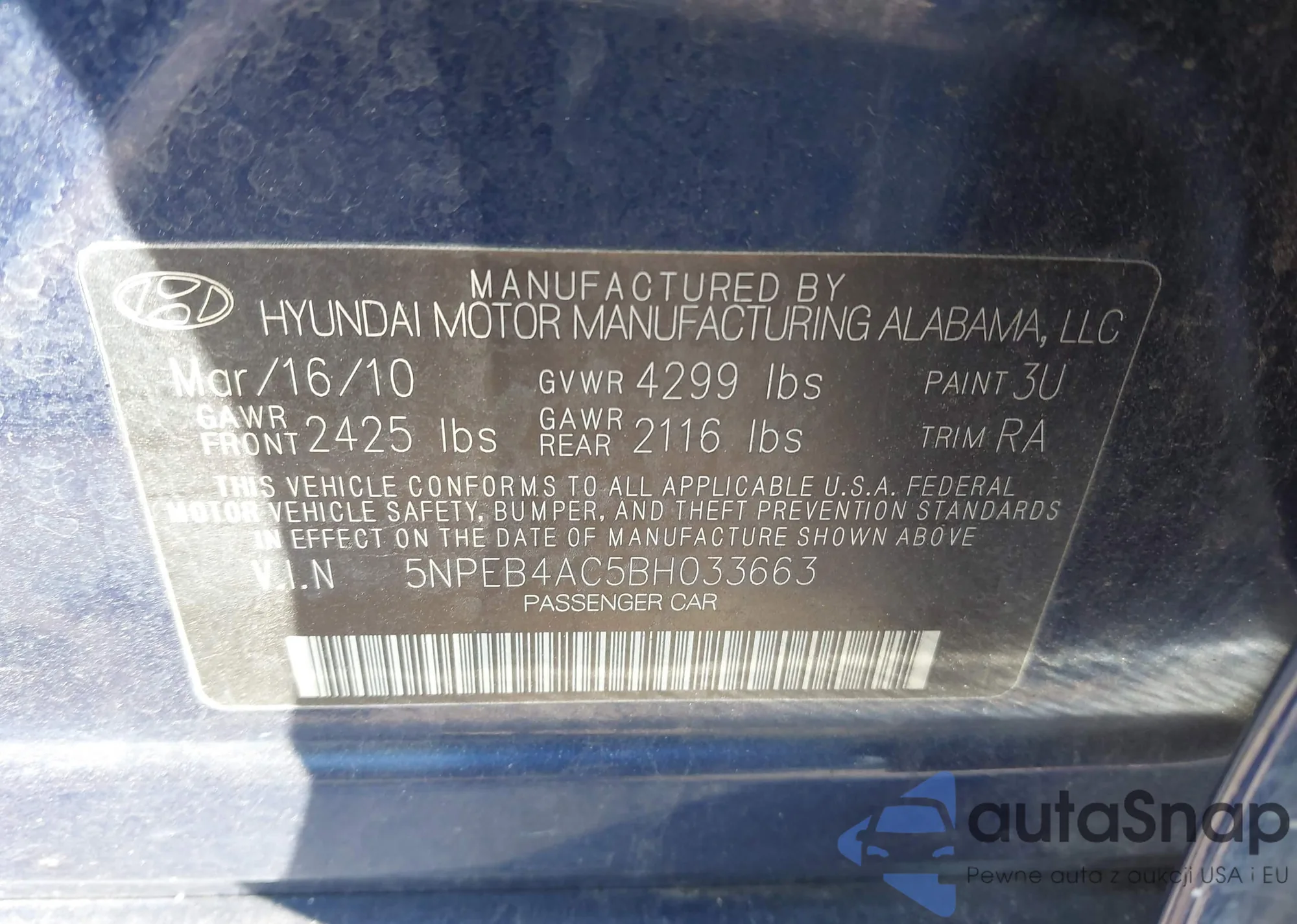 • VIN 1HGCP2F37CA056636