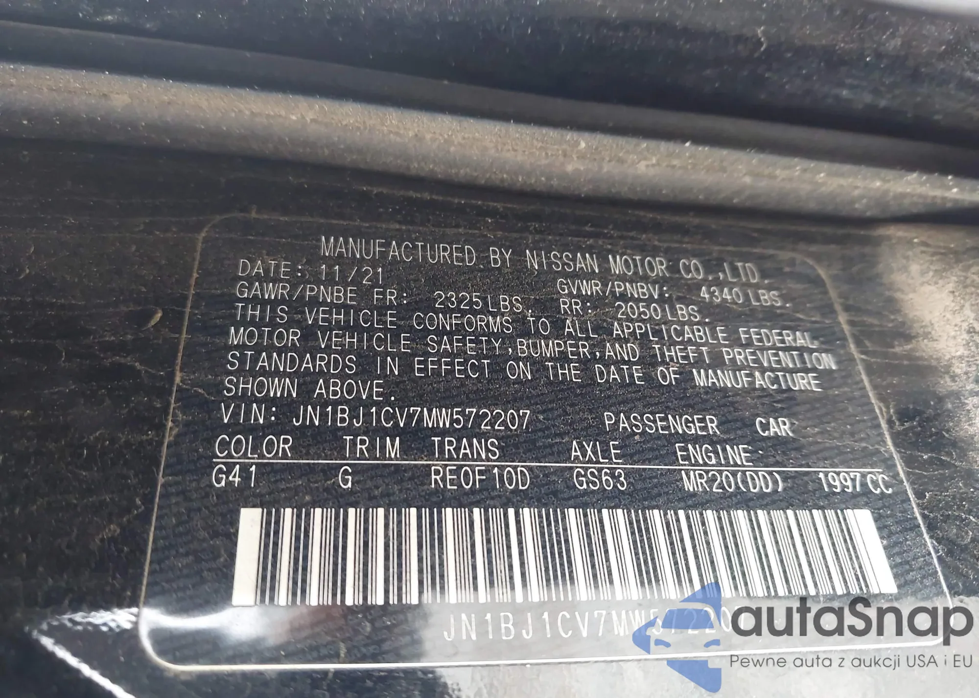 LOT: 44091820 VIN: JN1BJ1CV7MW572207
