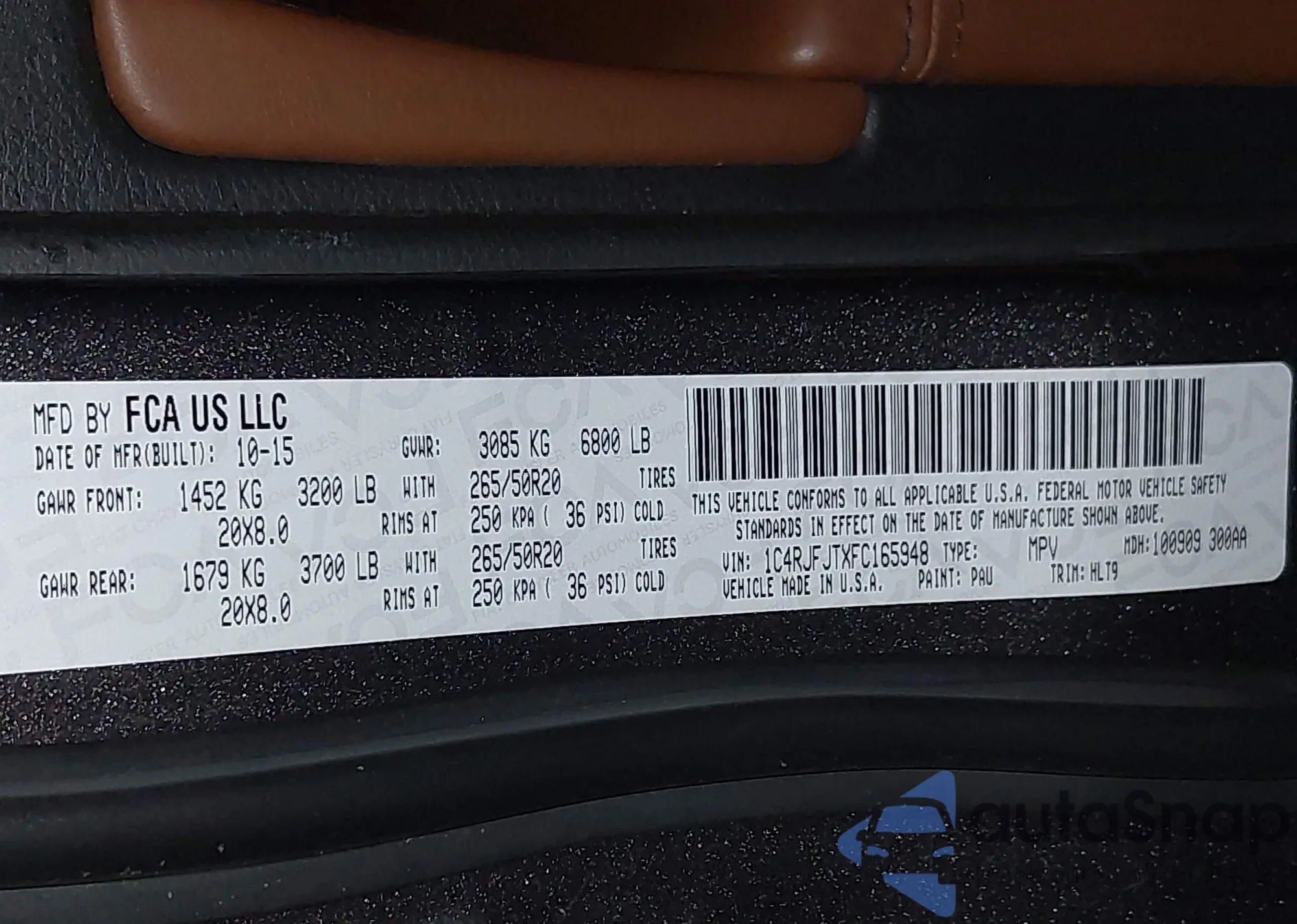 • VIN 5FNRL5H60DB019773
