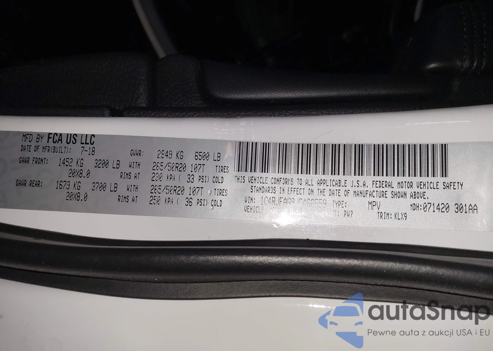 LOT: 44222173 VIN: WA1DECF33M1082113