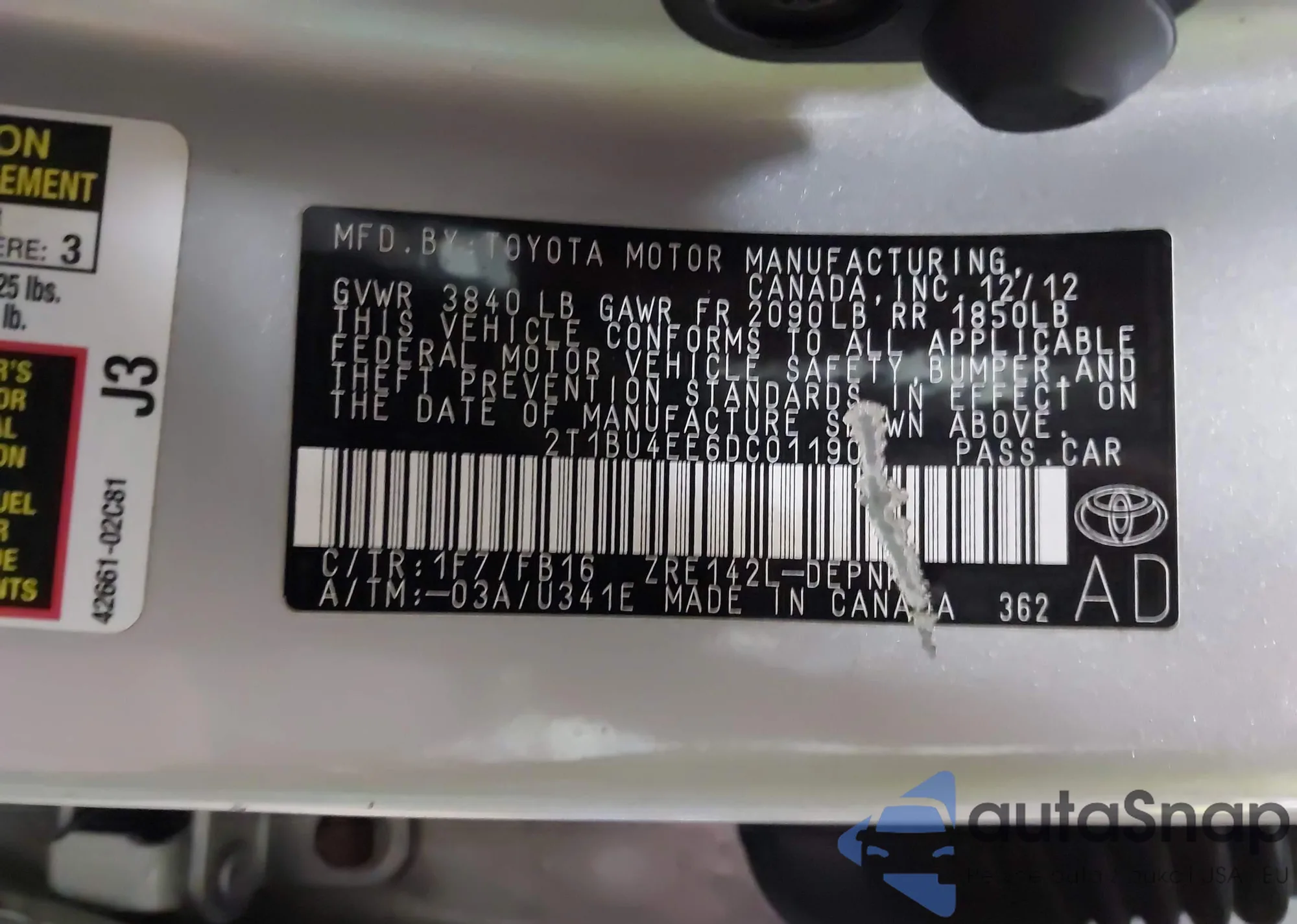 • VIN 2T1BU4EE6DC011900