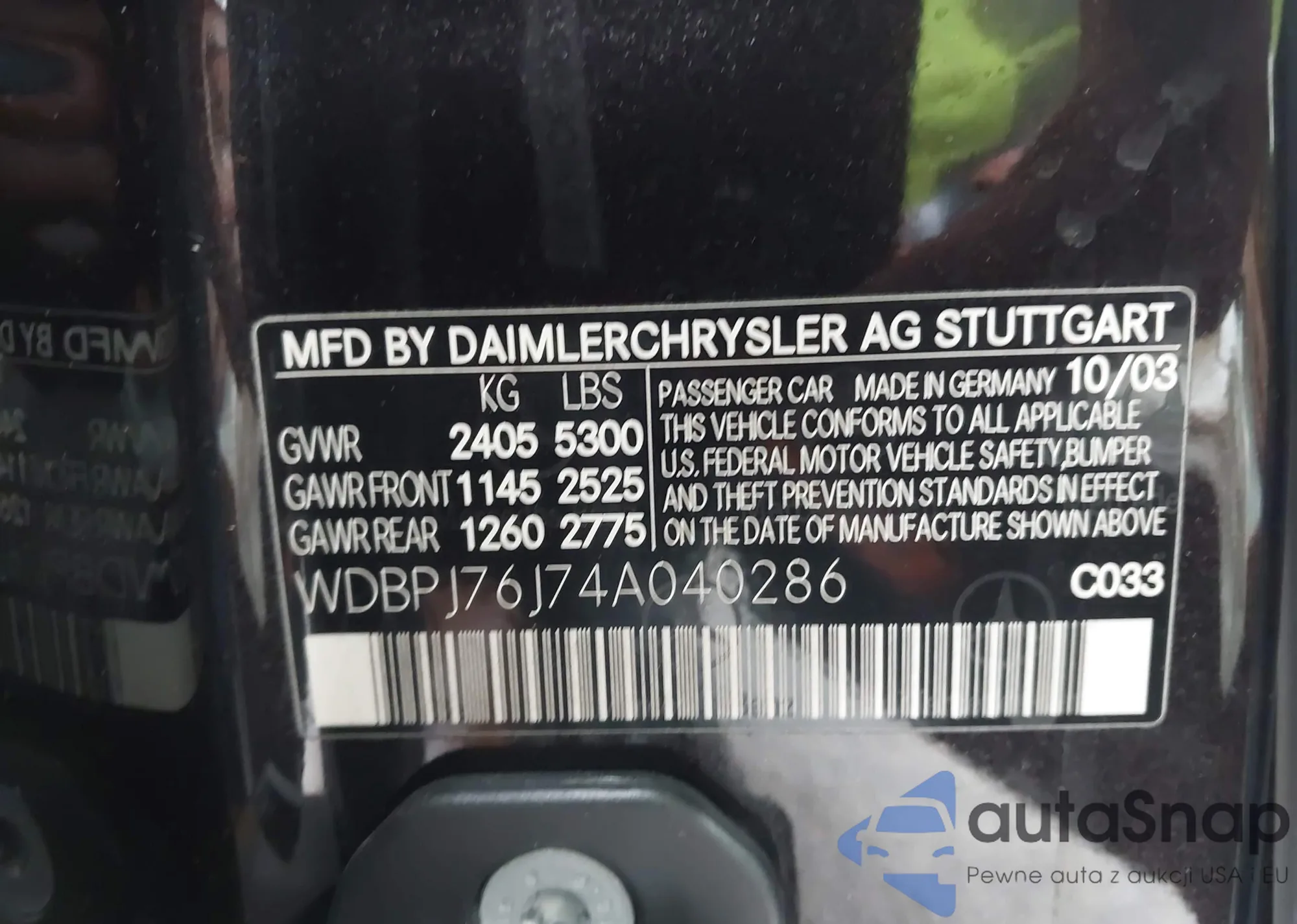 • VIN WDBPJ76J74A040286