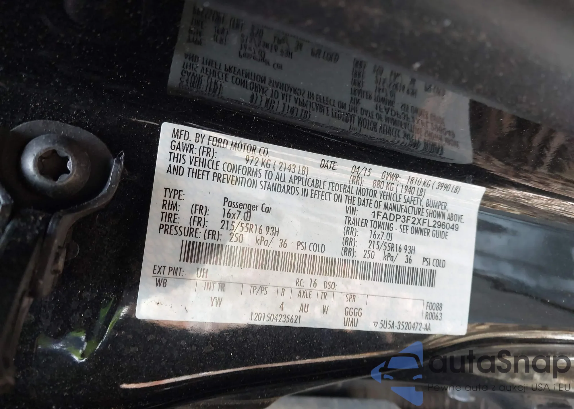 LOT: 44253814 VIN: 1FADP3F2XFL296049