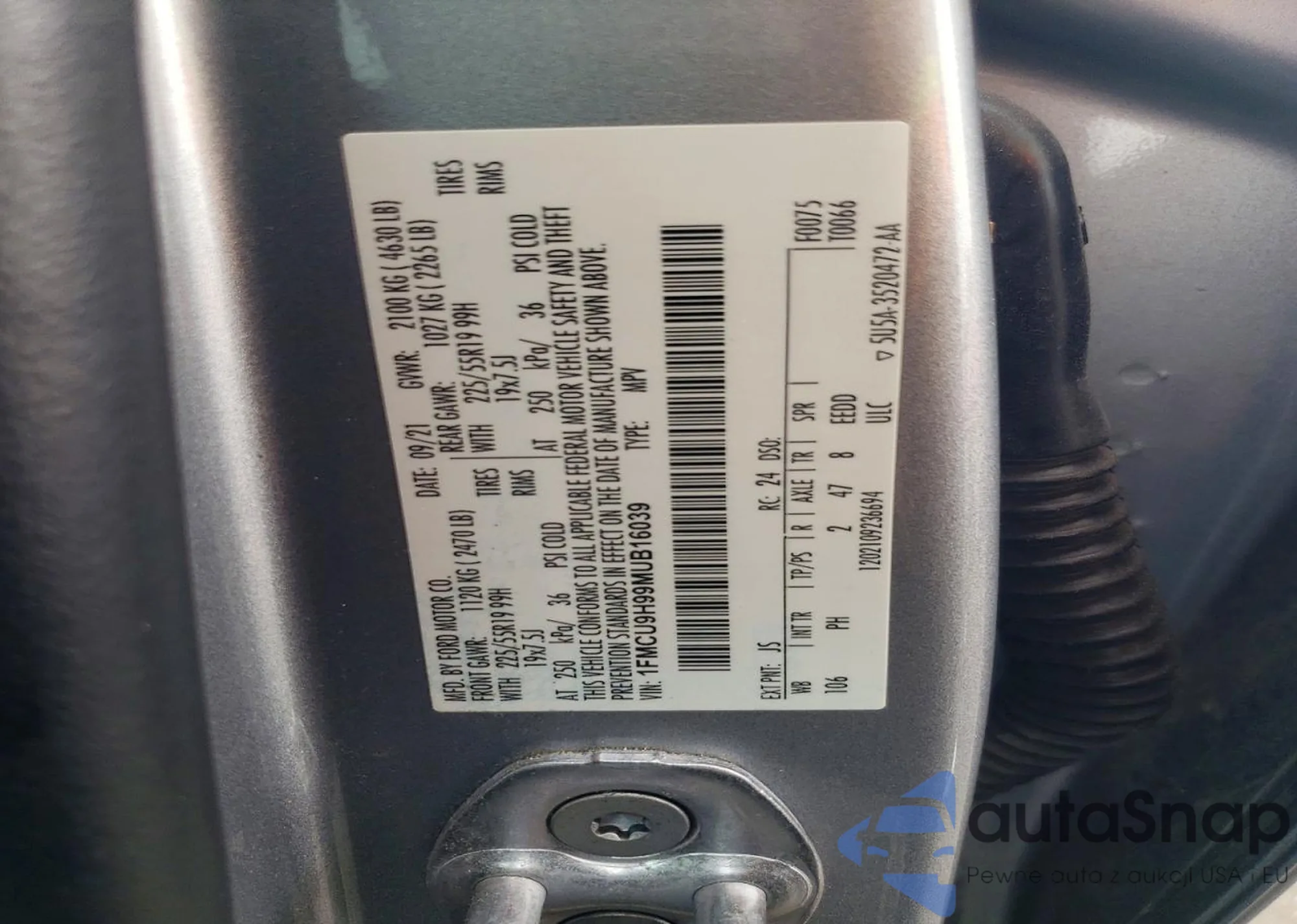 LOT: 98997155 VIN: 1FMCU9H99MUB16039