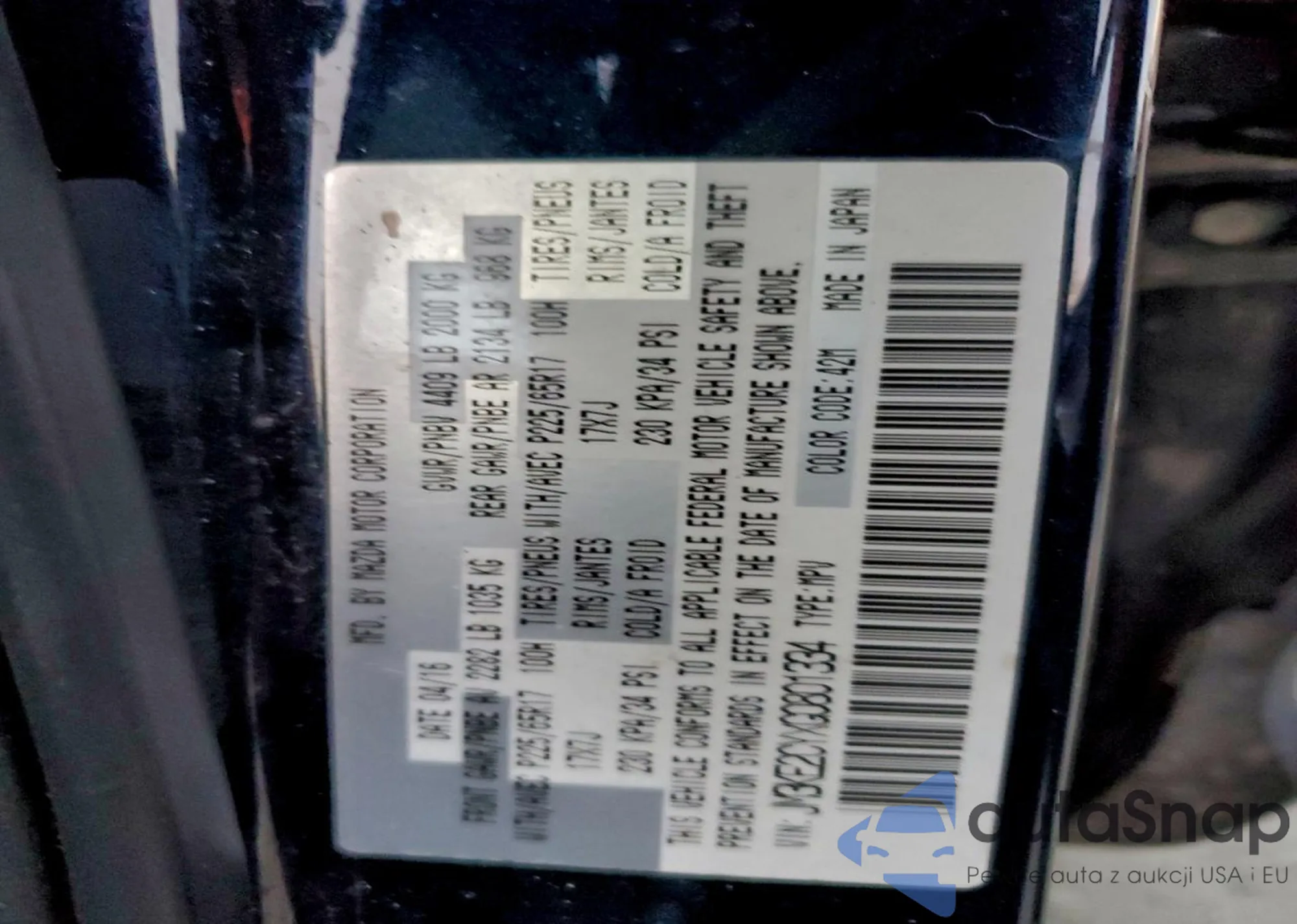 LOT: 96114585 VIN: JM3KE2CYXG0801334