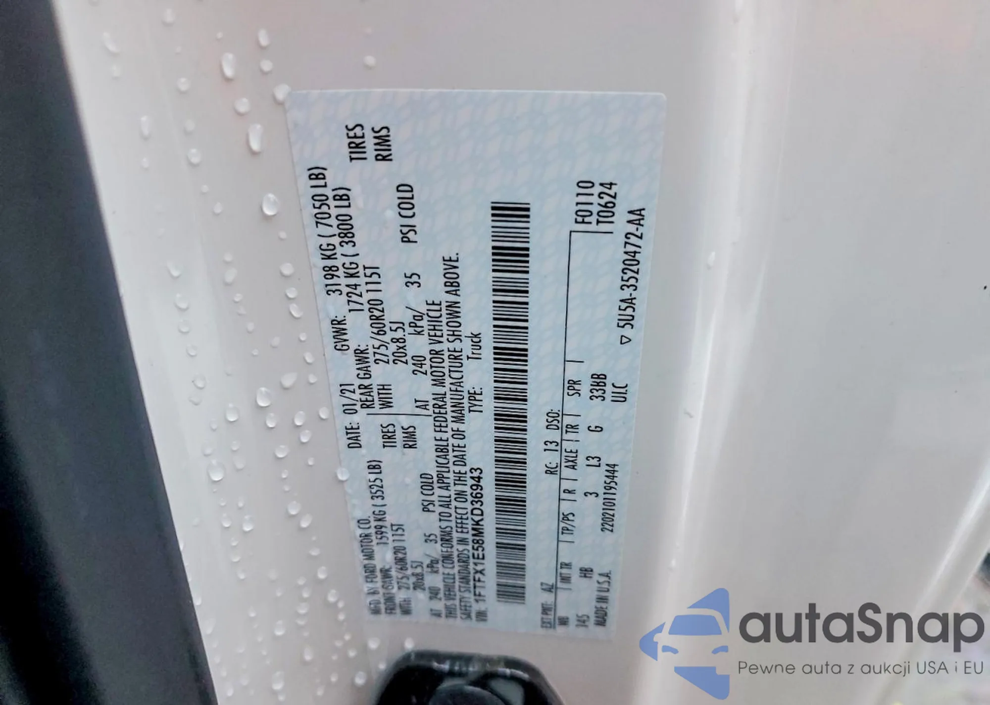 • VIN 1FTFX1E58MKD36943