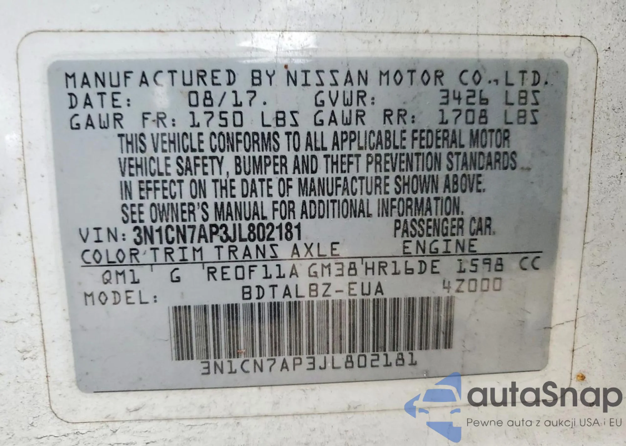 LOT: 72231795 VIN: JN1BV7AR1EM692627