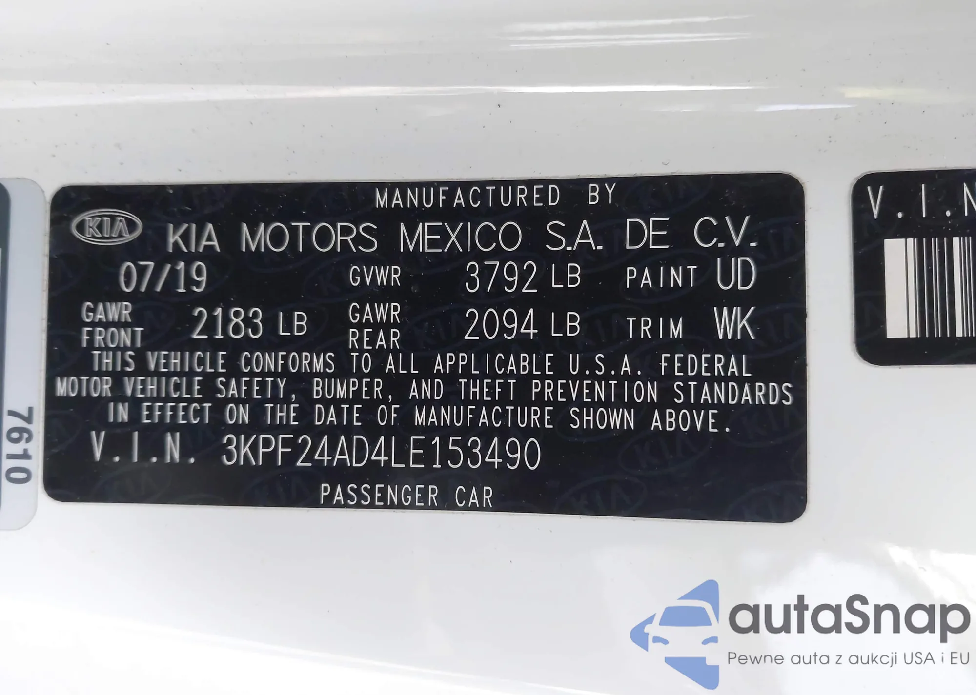 • VIN 3KPF24AD4LE153490