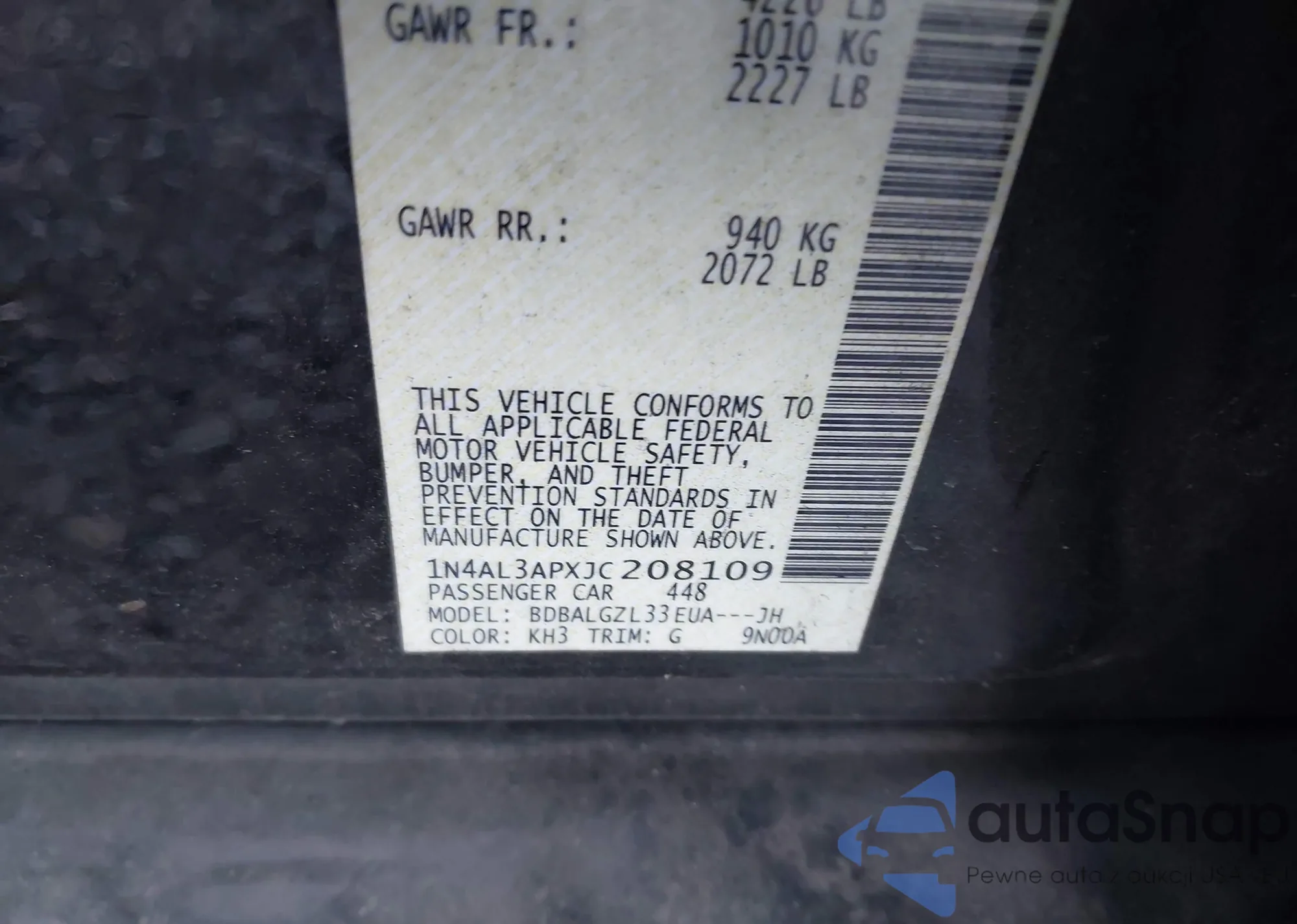 • VIN 1N4AL3APXJC208109