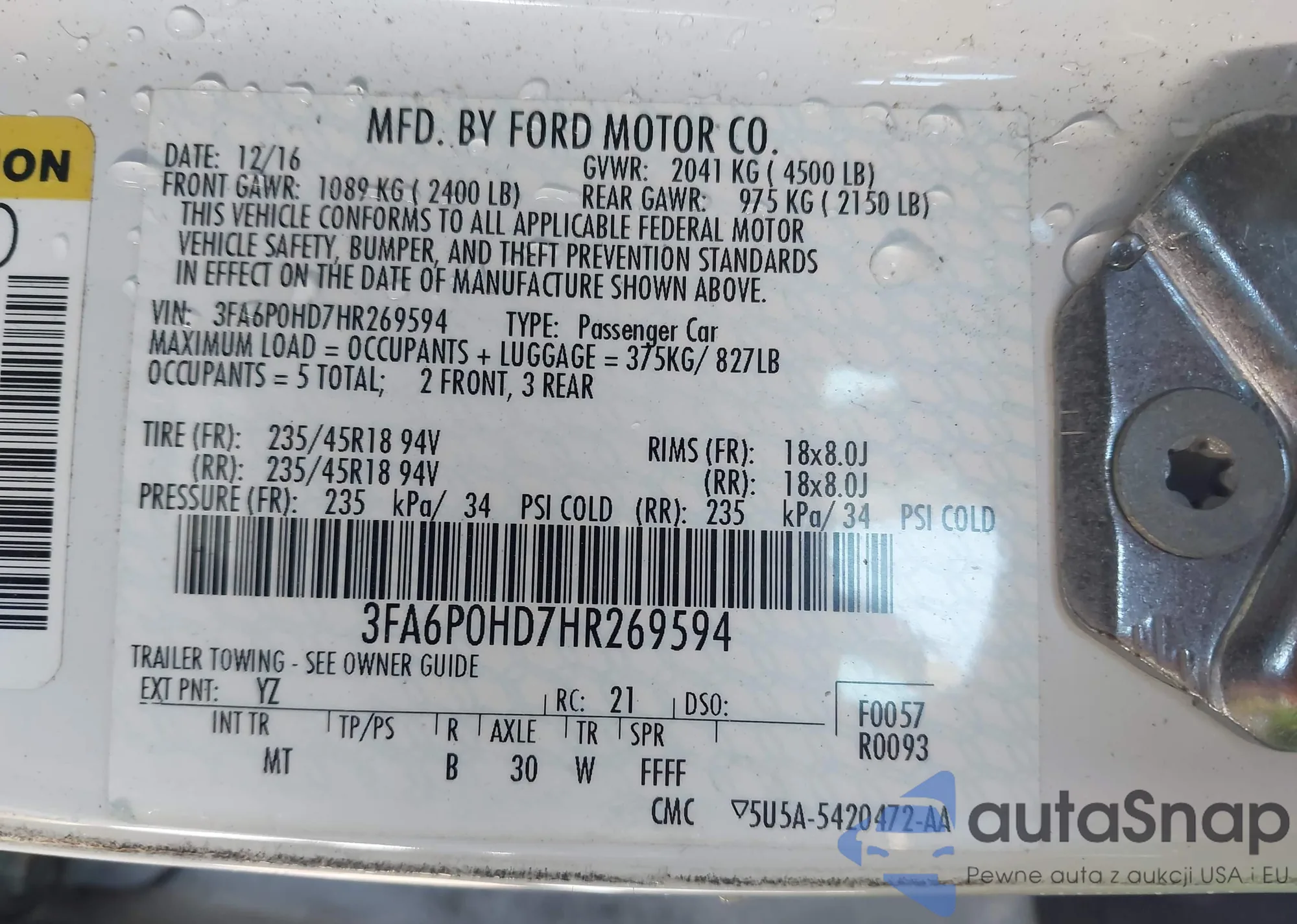 • VIN 3FA6P0HD7HR269594