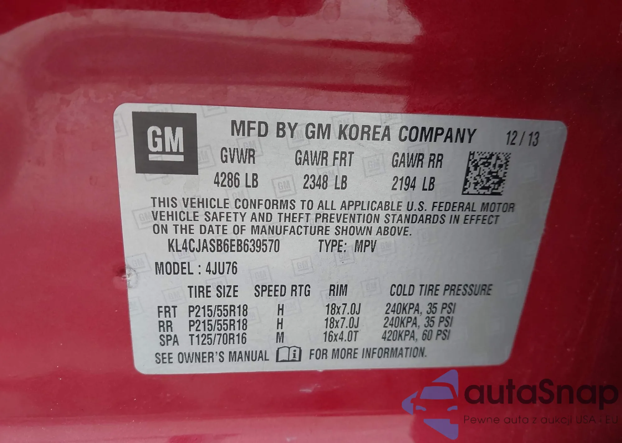 • VIN KL4CJASB6EB639570