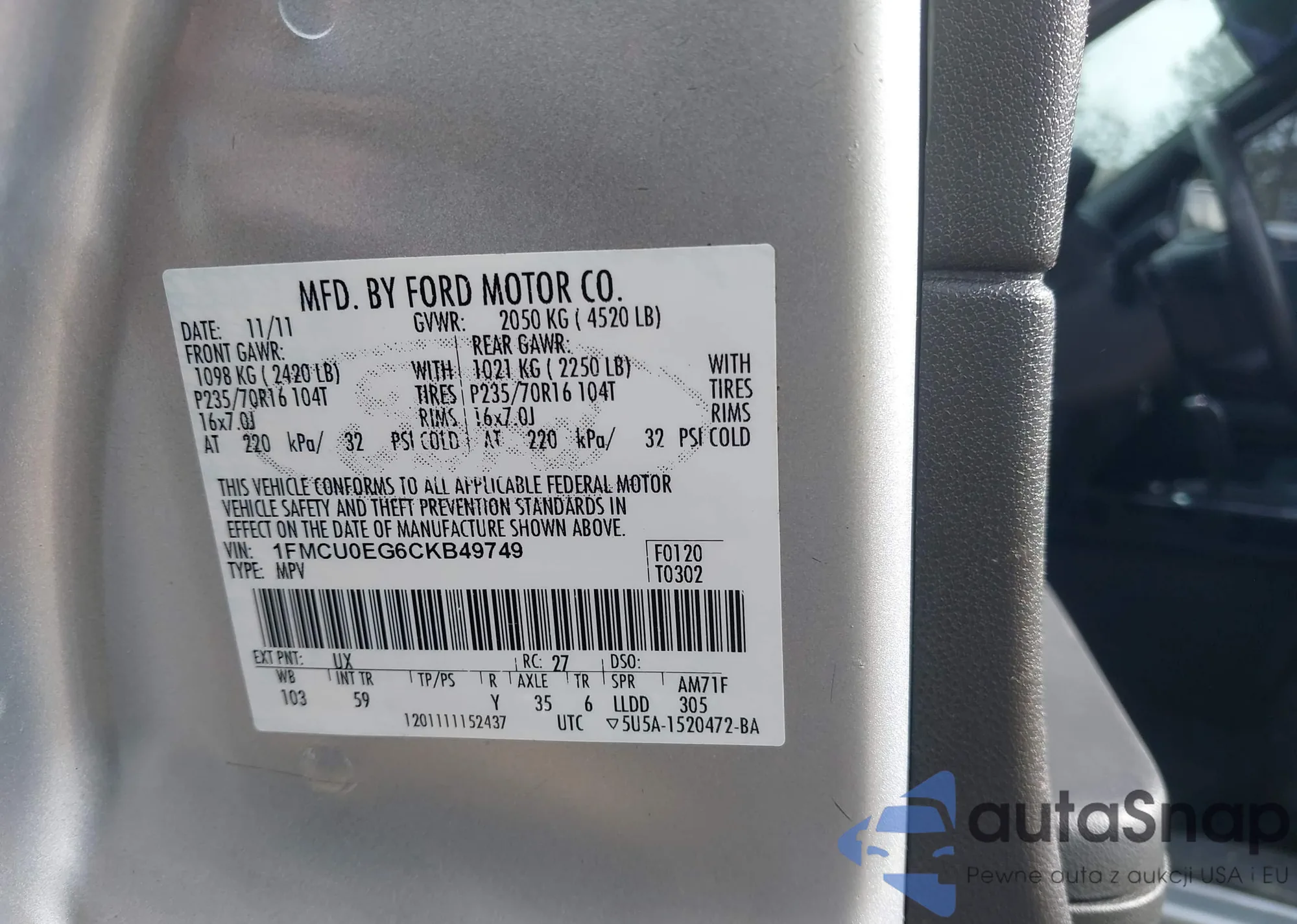 LOT: 44113116 VIN: KM8JU3AG0FU032966