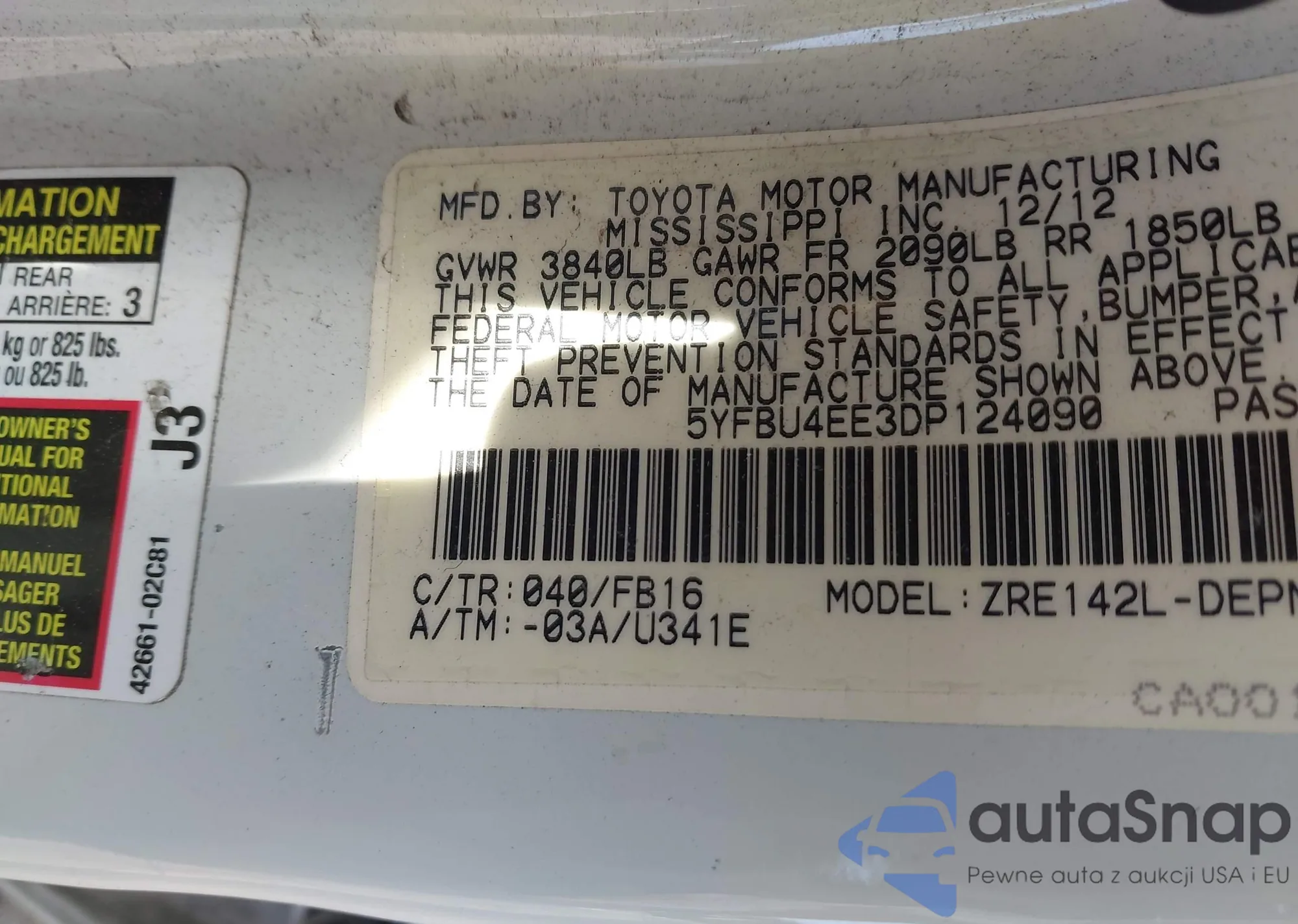 LOT: 44325038 VIN: 5YFBU4EE3DP124090