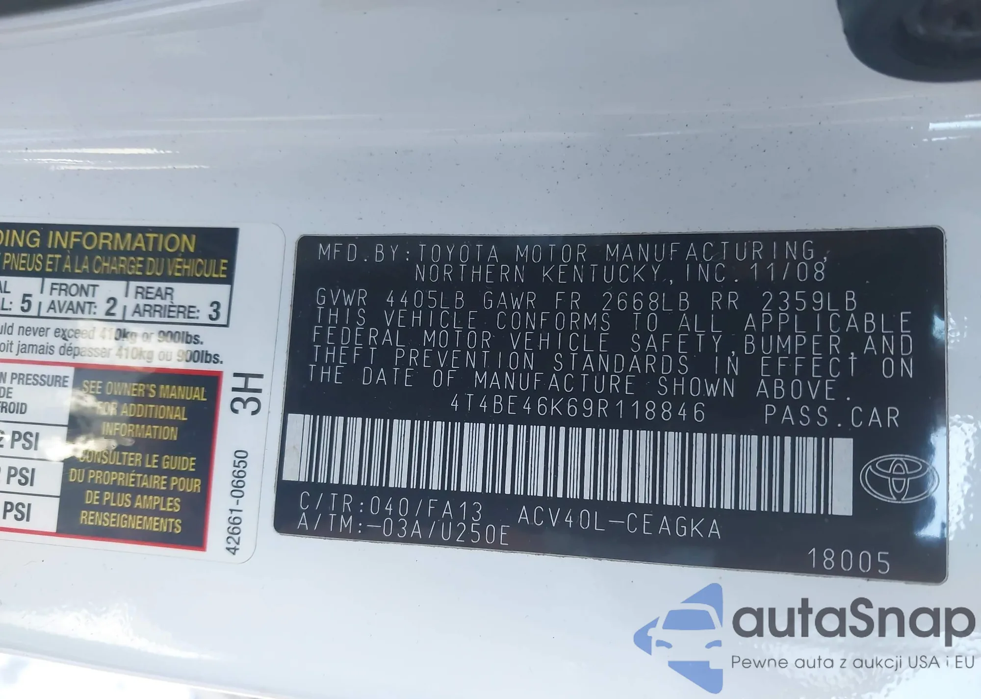 • VIN 4T4BE46K69R118846