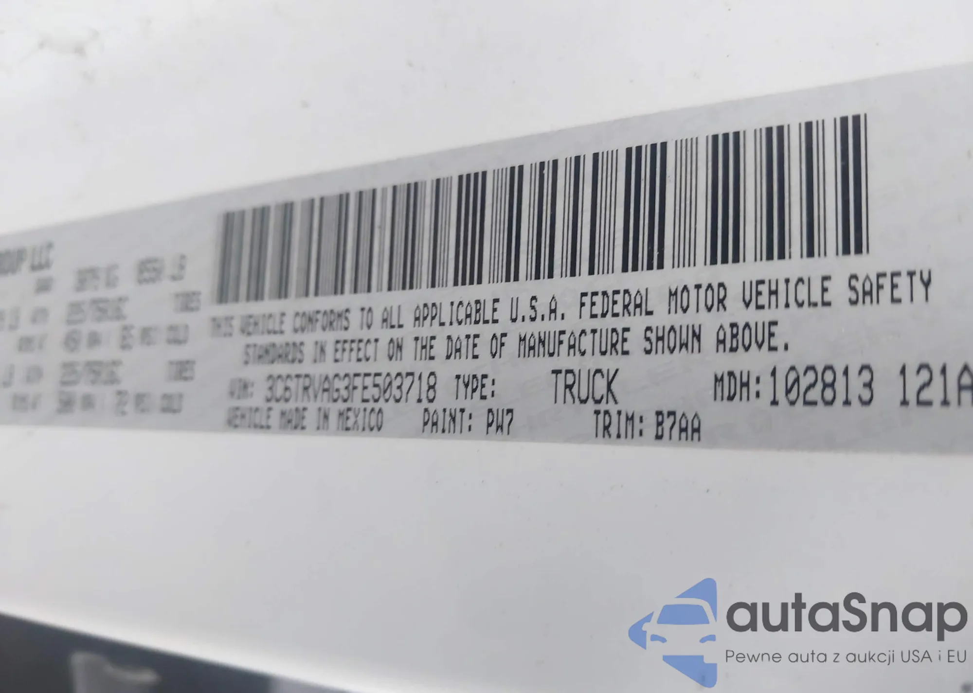 • VIN 3C6TRVAG3FE503718