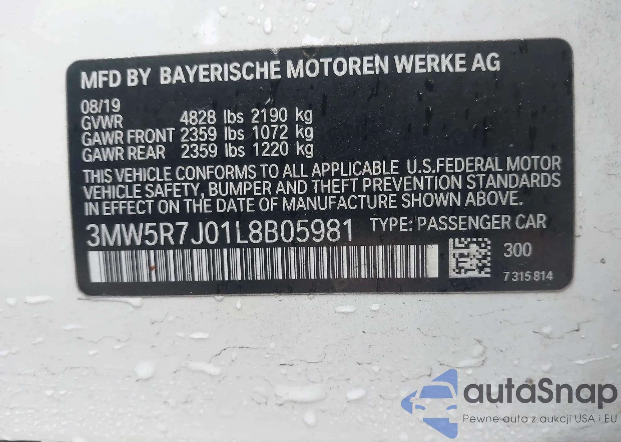 • VIN 3MW5R7J01L8B05981