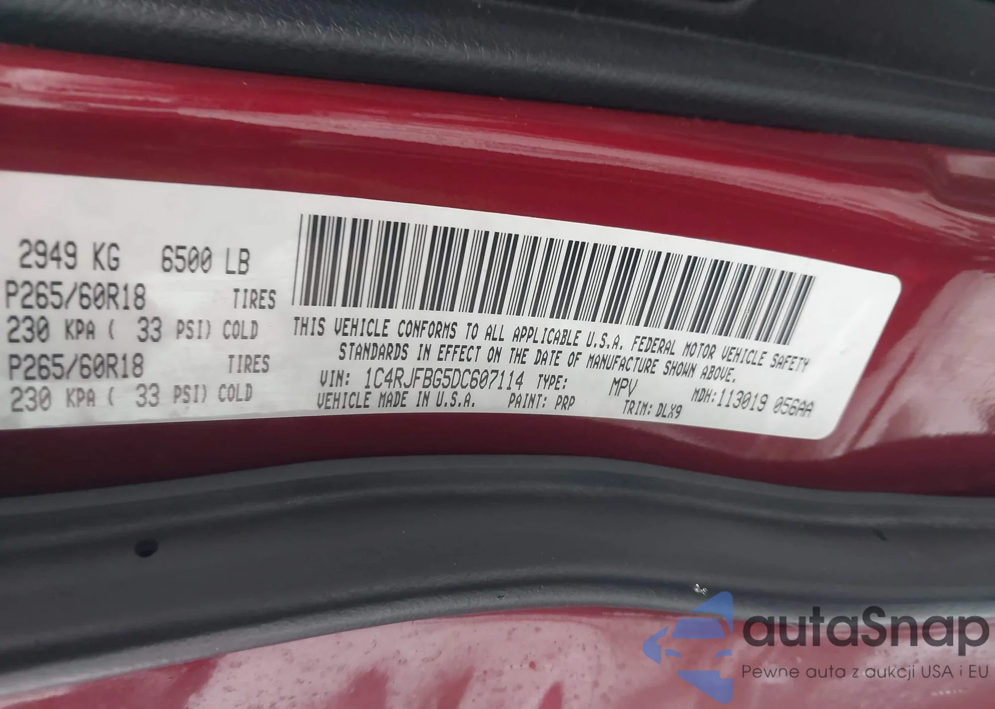 • VIN 1C4RJFBG5DC607114