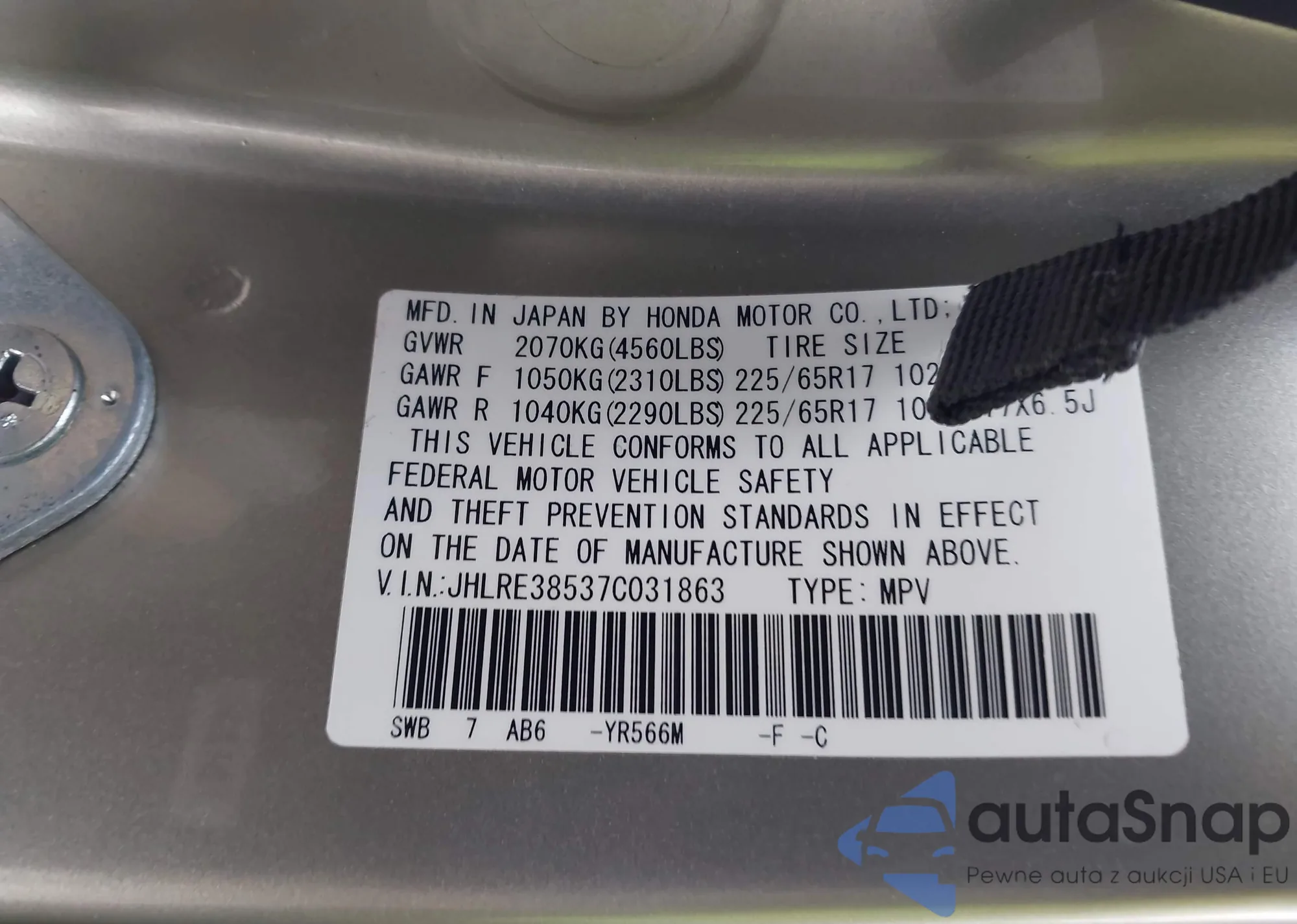 • VIN JHLRE38537C031863