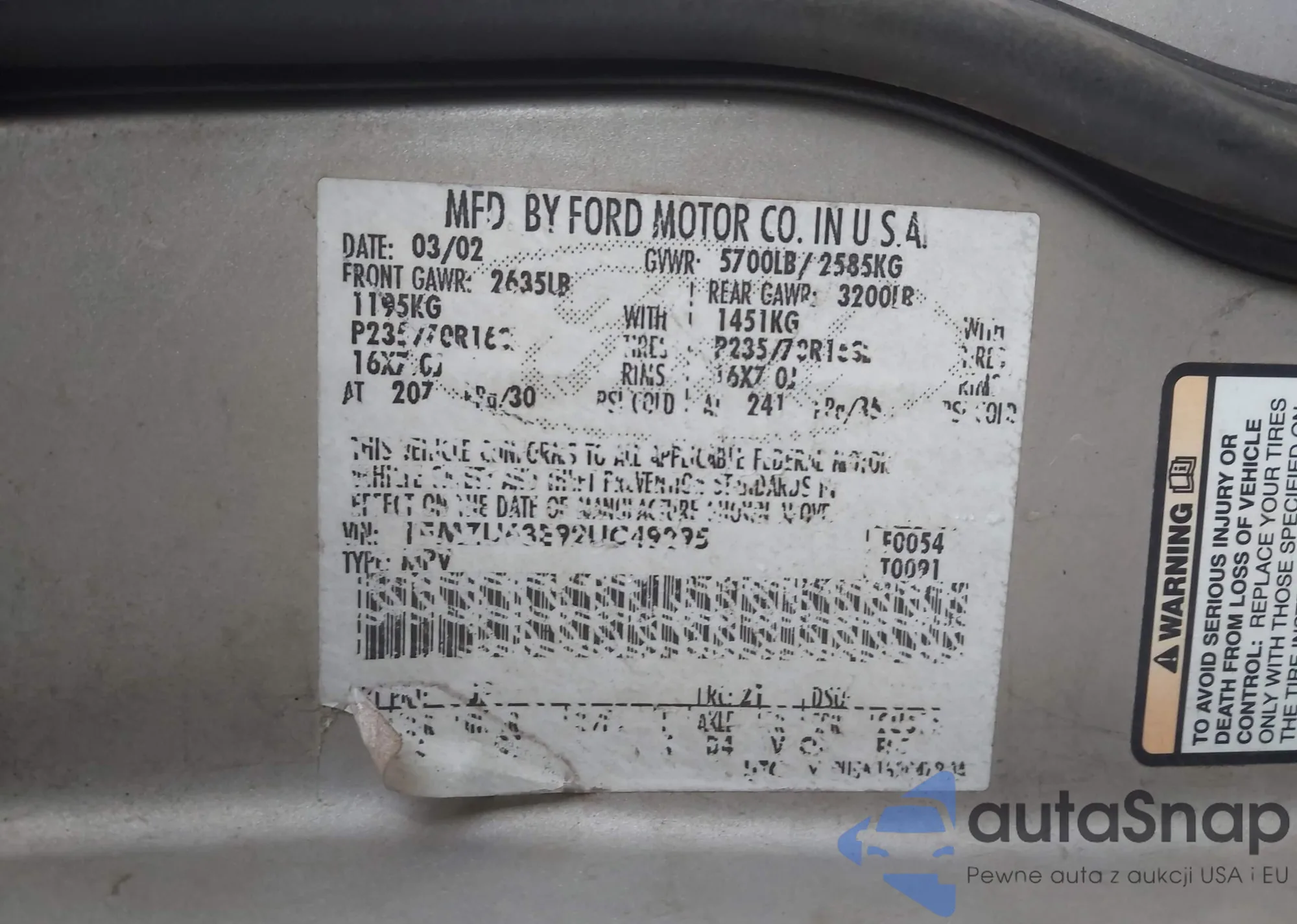 • VIN 1FMZU63E92UC49295