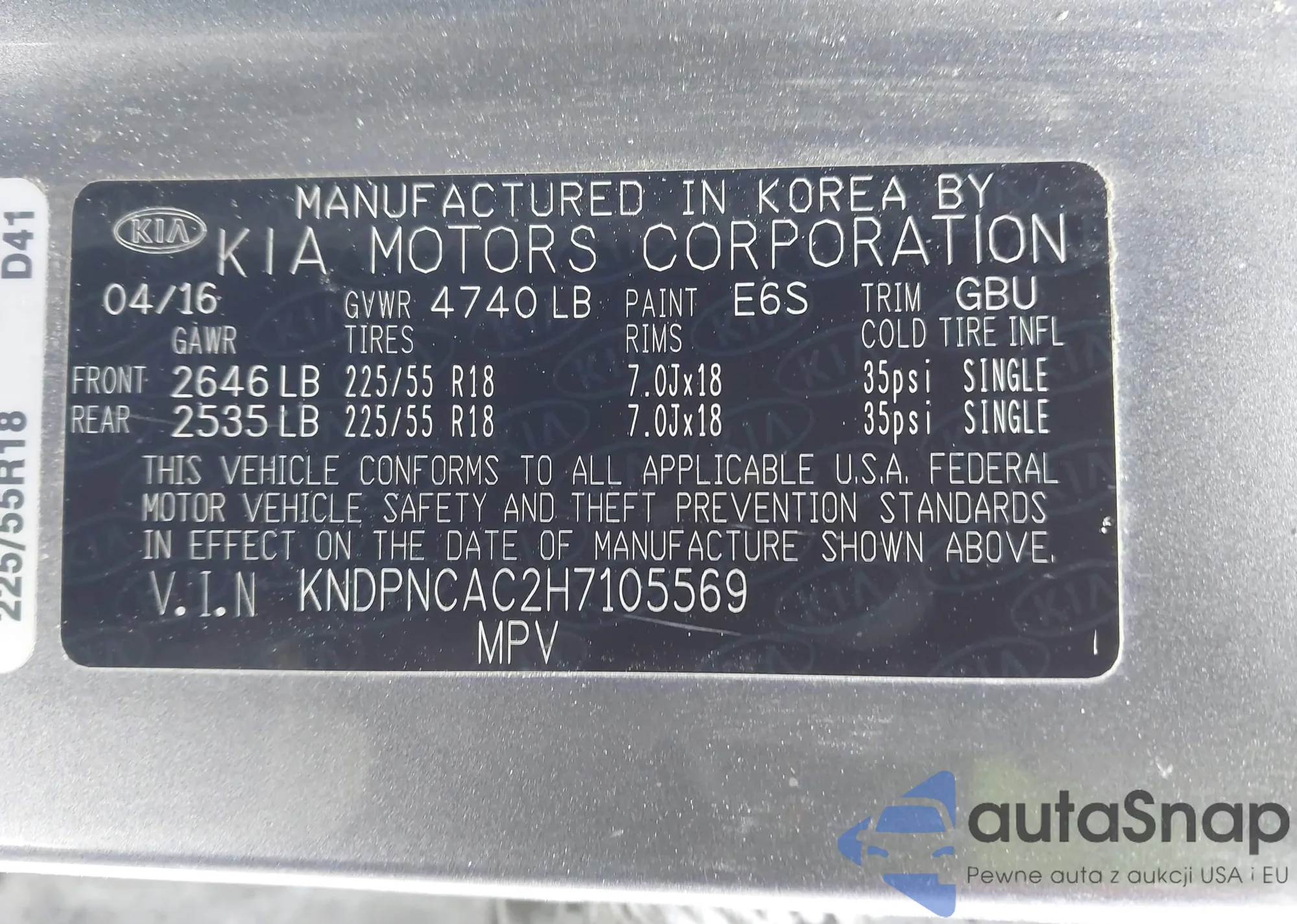• VIN KNDPNCAC2H7105569