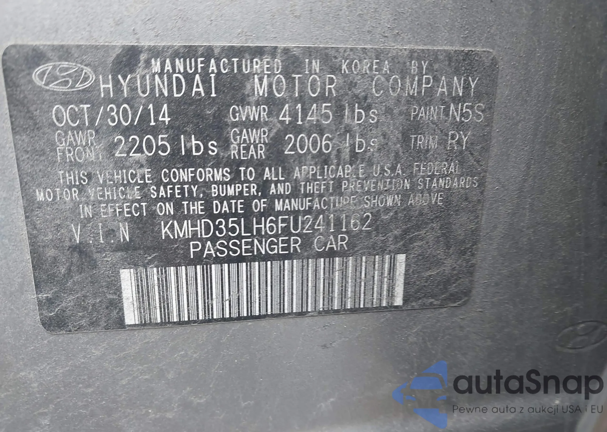 • VIN KMHD35LH6FU241162