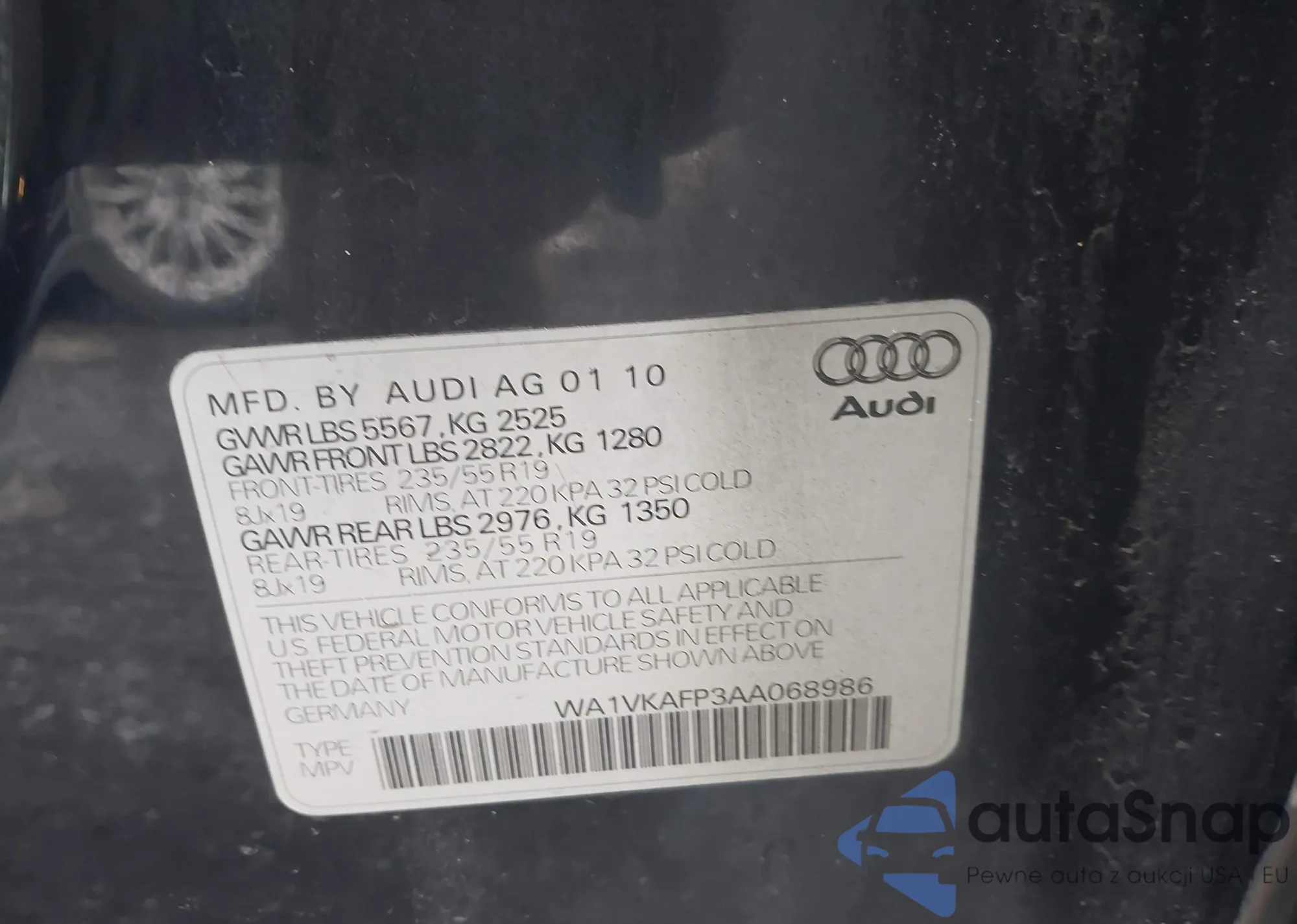 LOT: 44263864 VIN: WA1VKAFP3AA068986