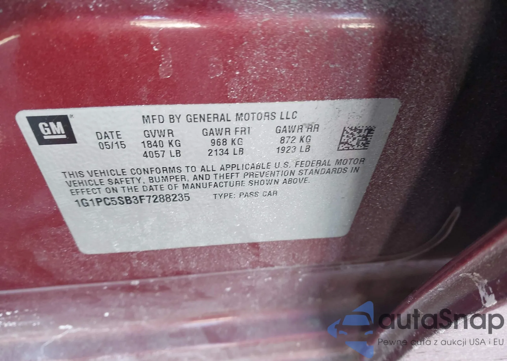 LOT: 44298626 VIN: 1G1PC5SB3F7288235