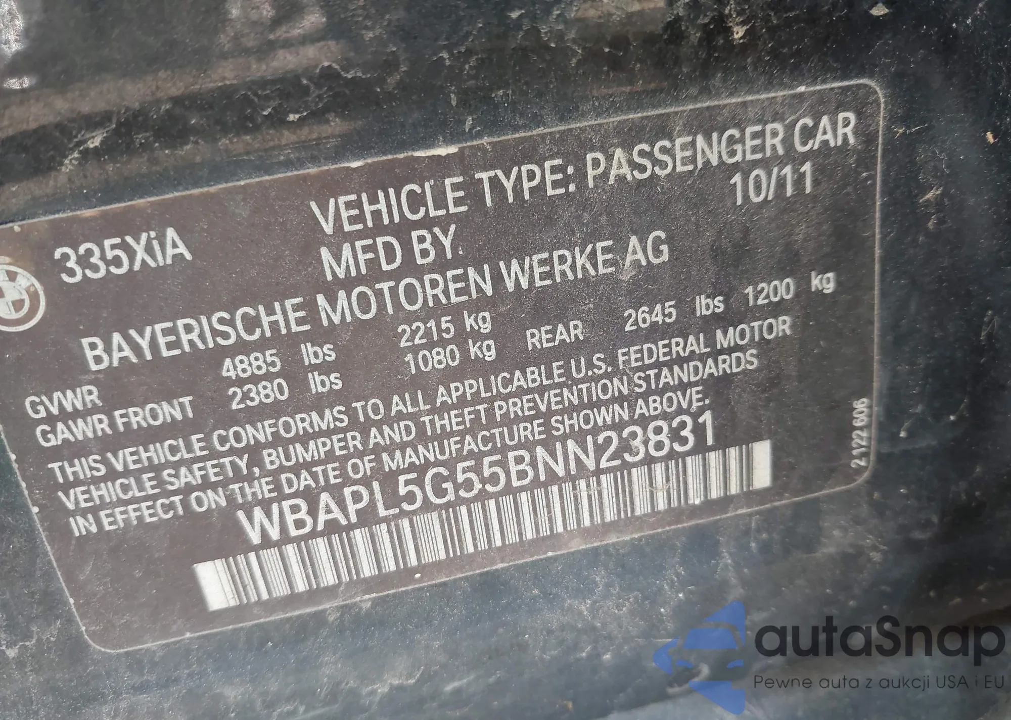 • VIN WBAPL5G55BNN23831