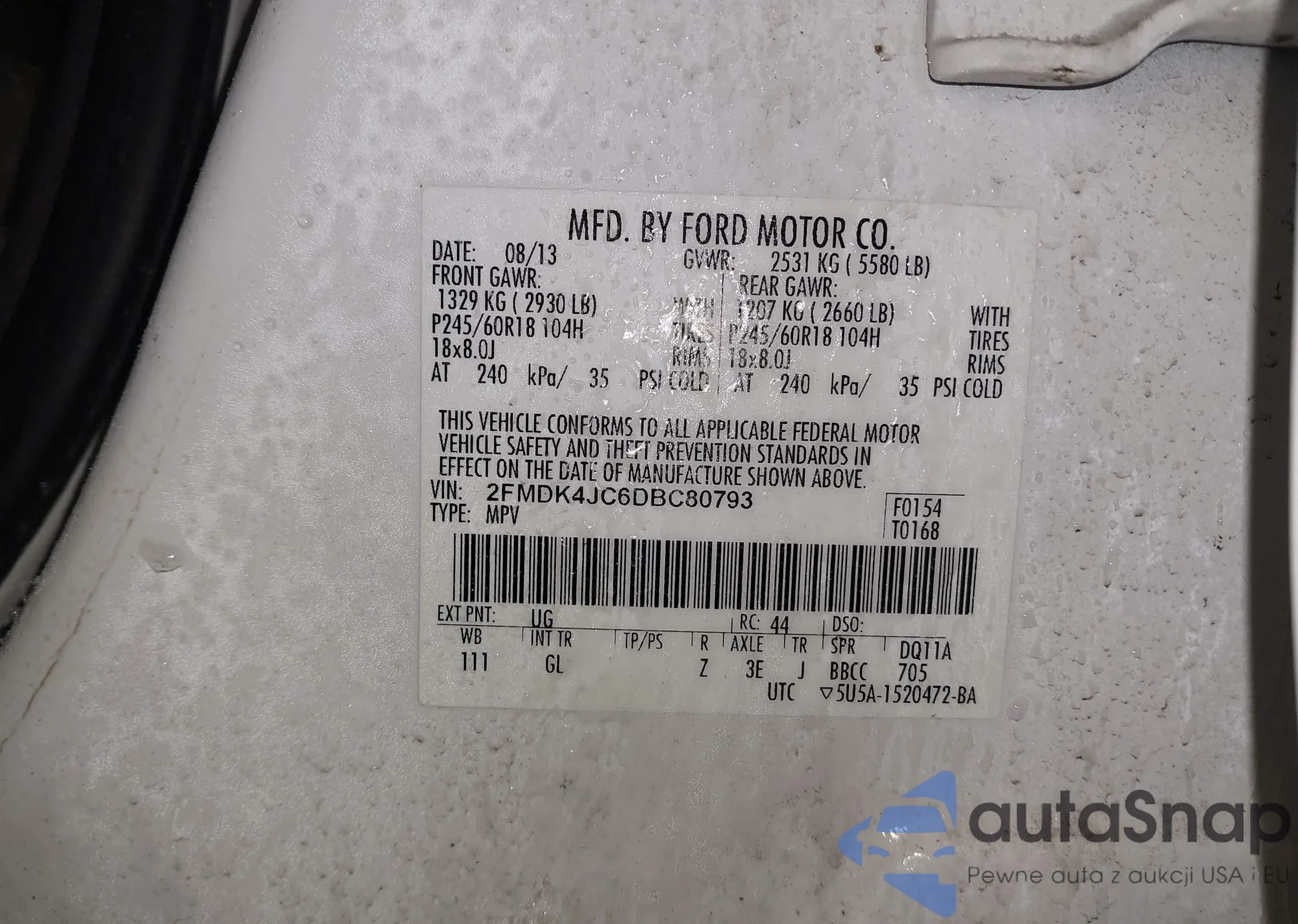 LOT: 44260433 VIN: 2FMDK4JC6DBC80793