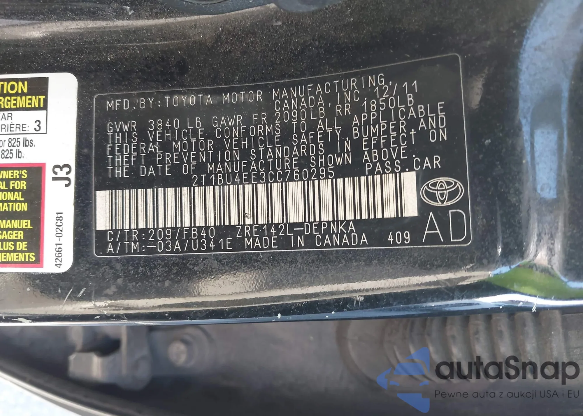 • VIN 2T1BU4EE3CC760295