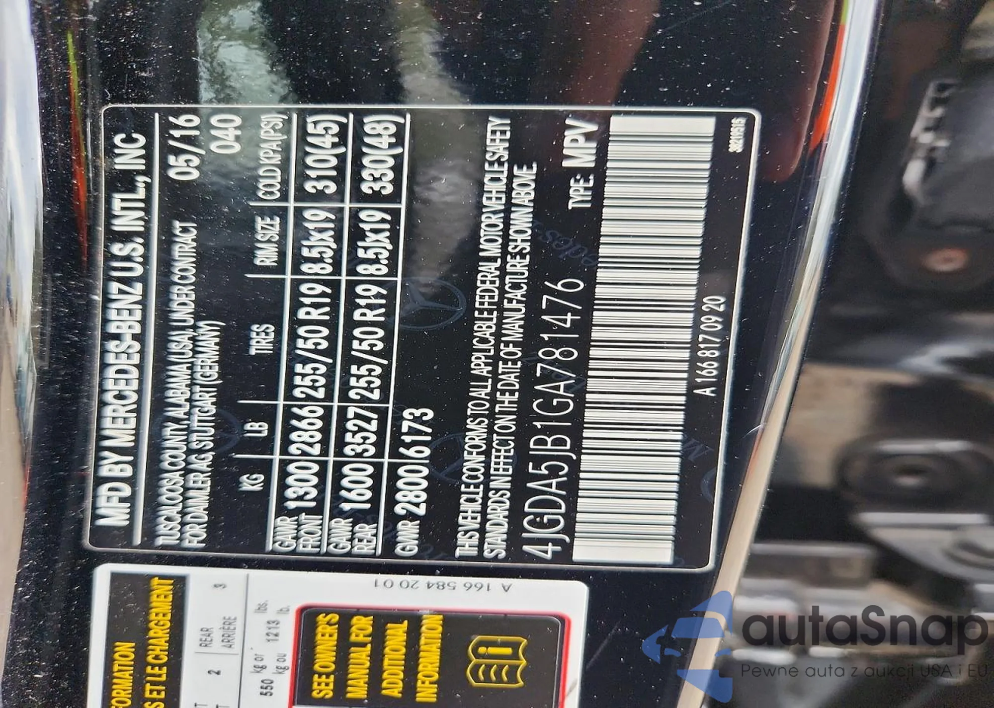 • VIN 4JGDA5JB1GA781476