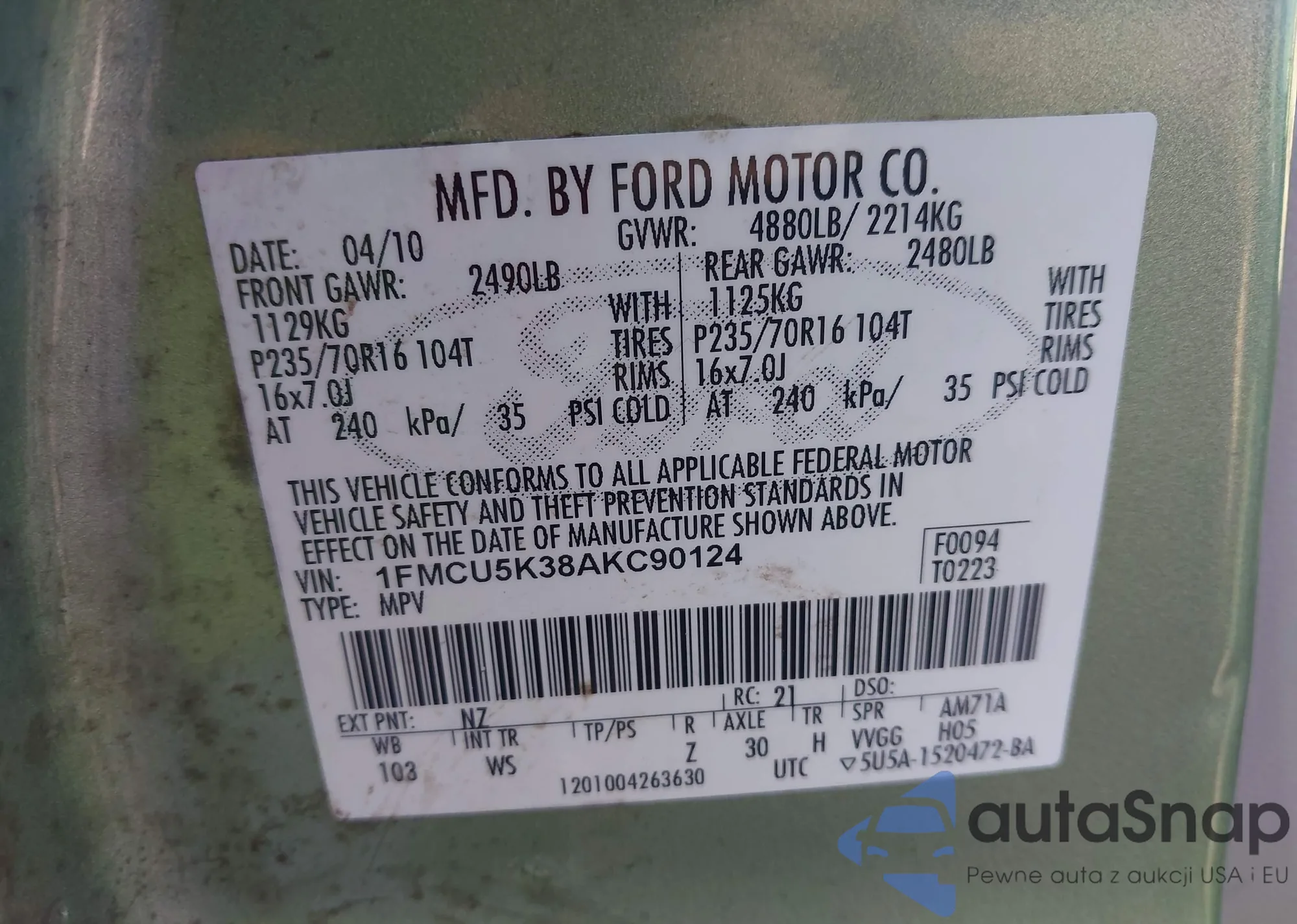 • VIN 1HGCV2F38LA014806