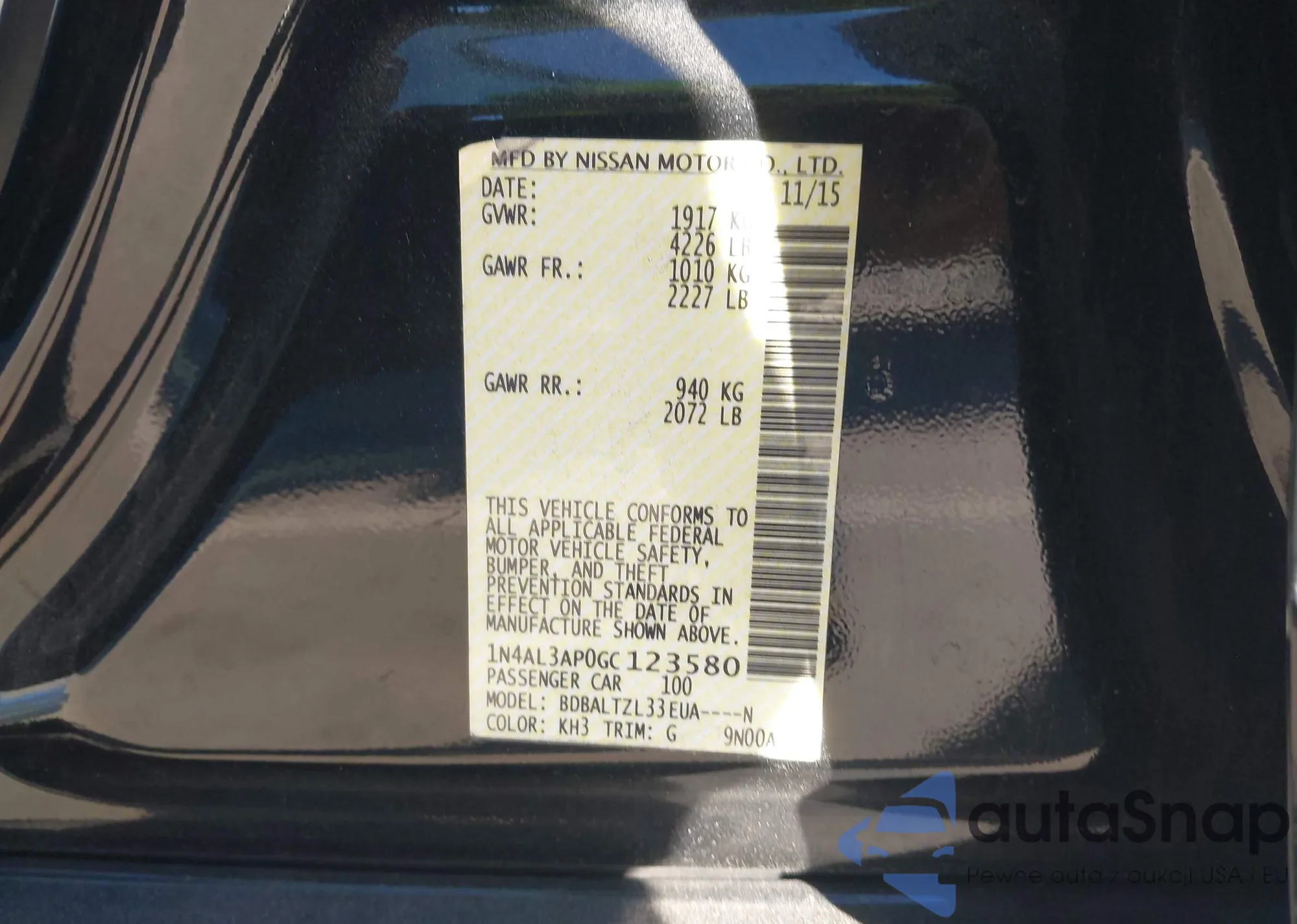 LOT: 44174282 VIN: 1N4AL3AP0GC123580