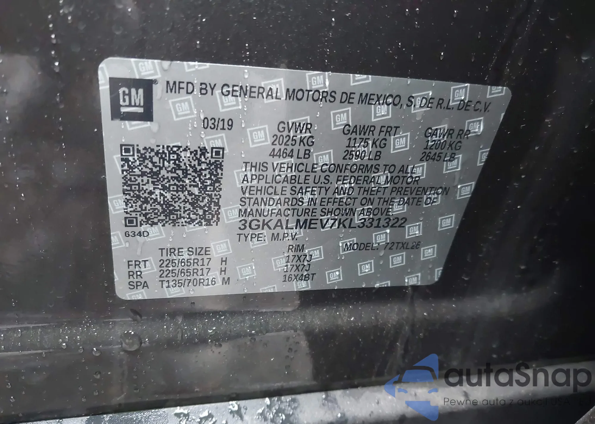 LOT: 44307315 VIN: WP1AA2AY7KDA07037
