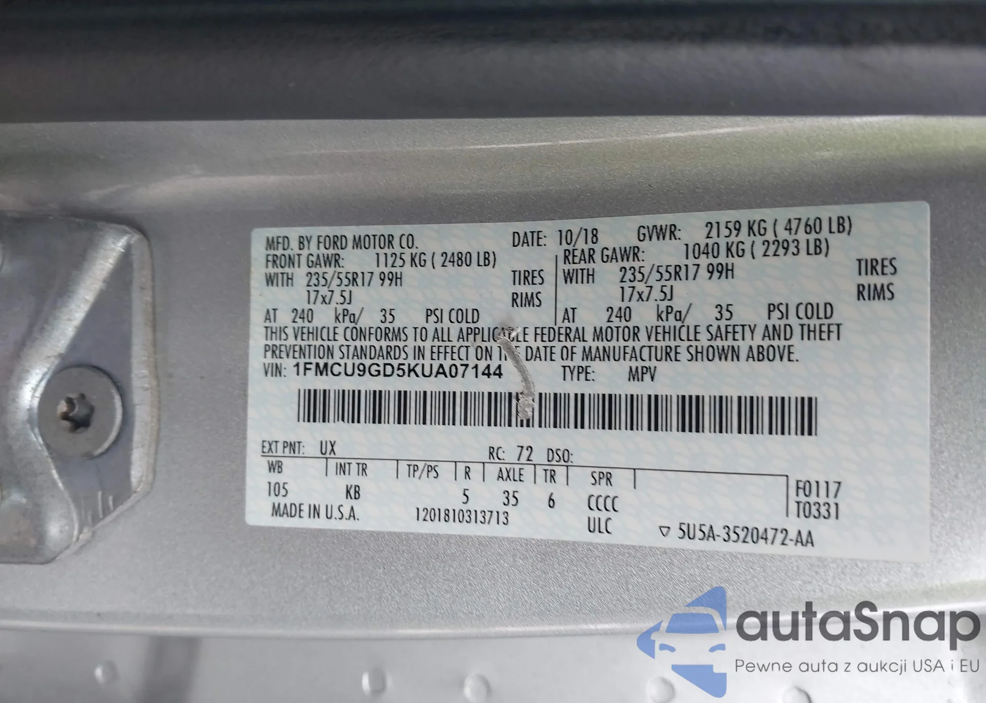 • VIN WP1AA2AY7KDA07037