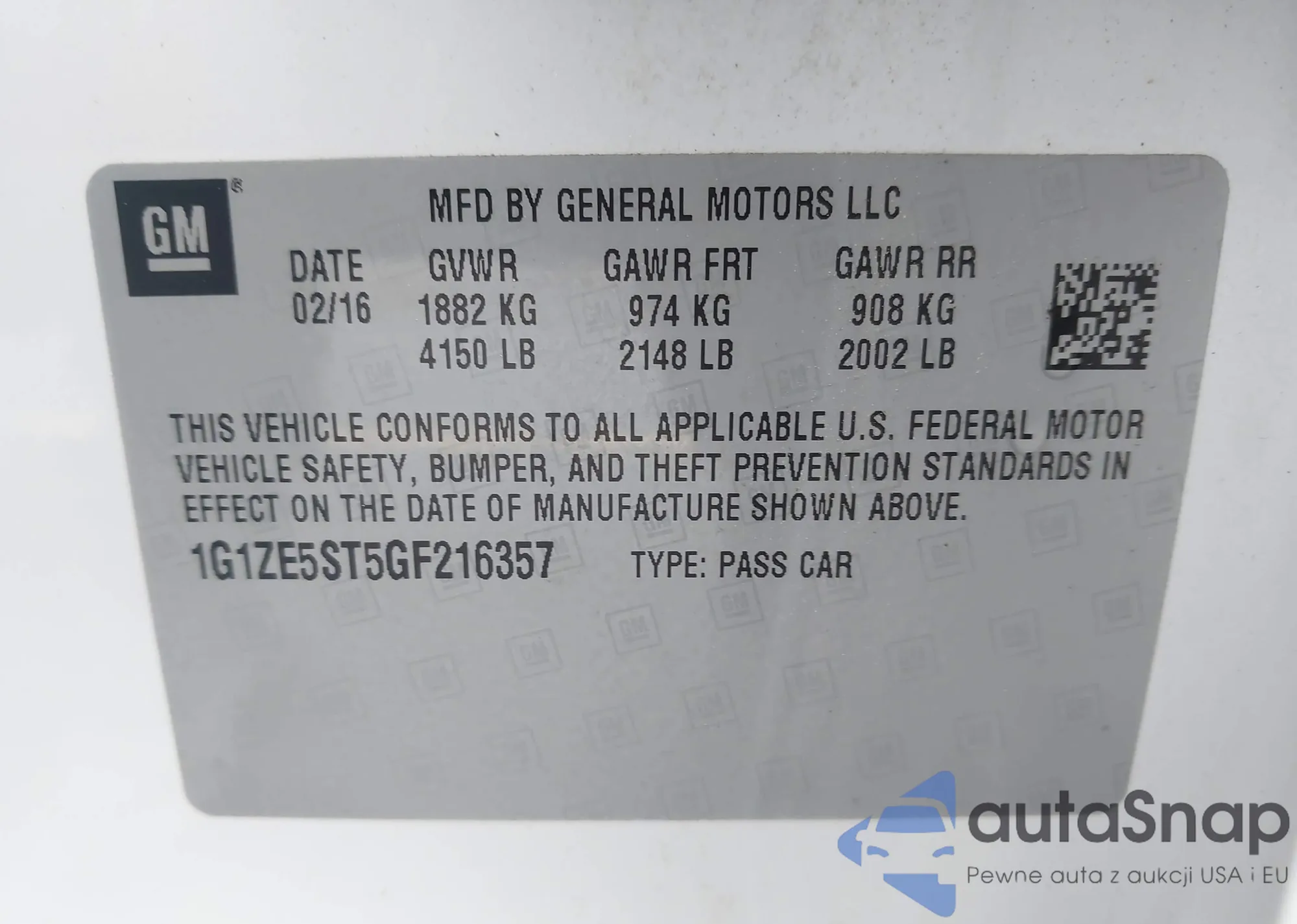 • VIN 1G1FX6S02P4192409