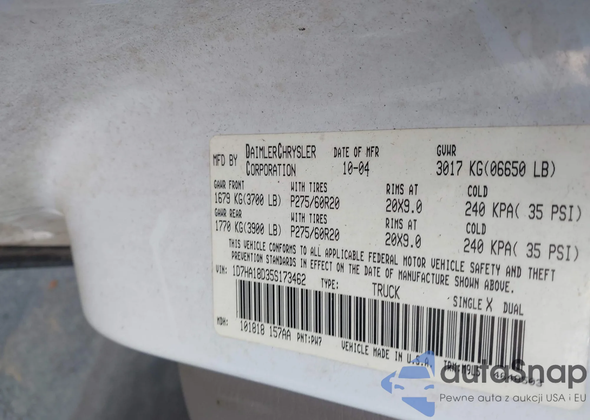 LOT: 43804809 VIN: 1D7HA18D35S173462