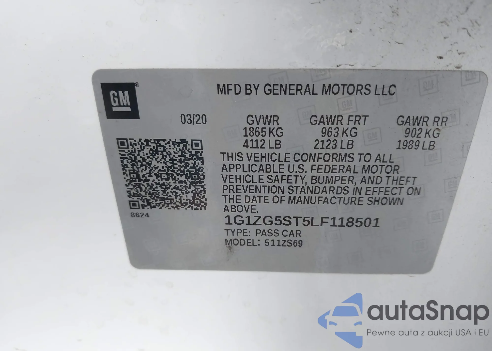 LOT: 43823752 VIN: 1GCFG15X581222637