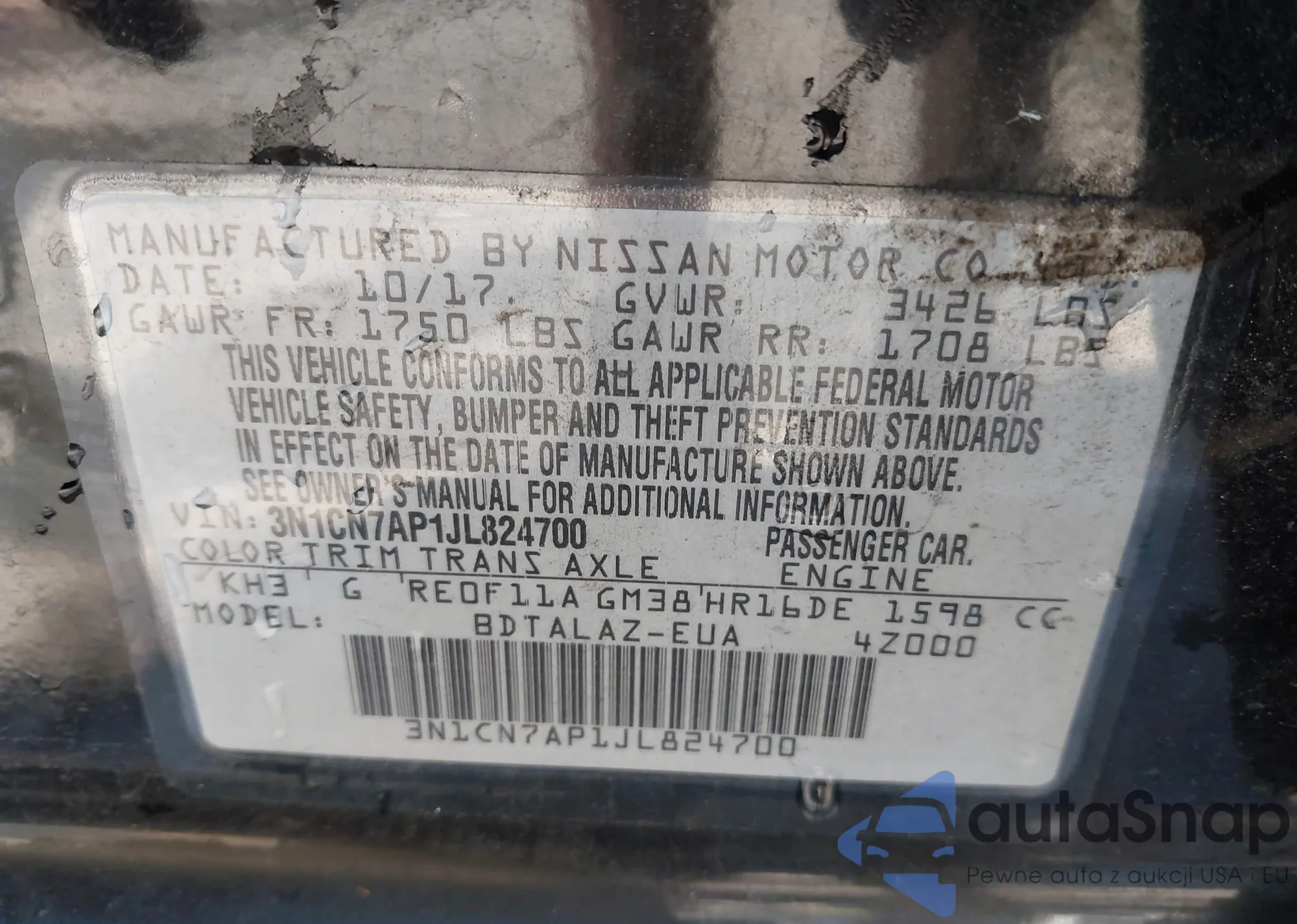 • VIN 3N1CN7AP1JL824700