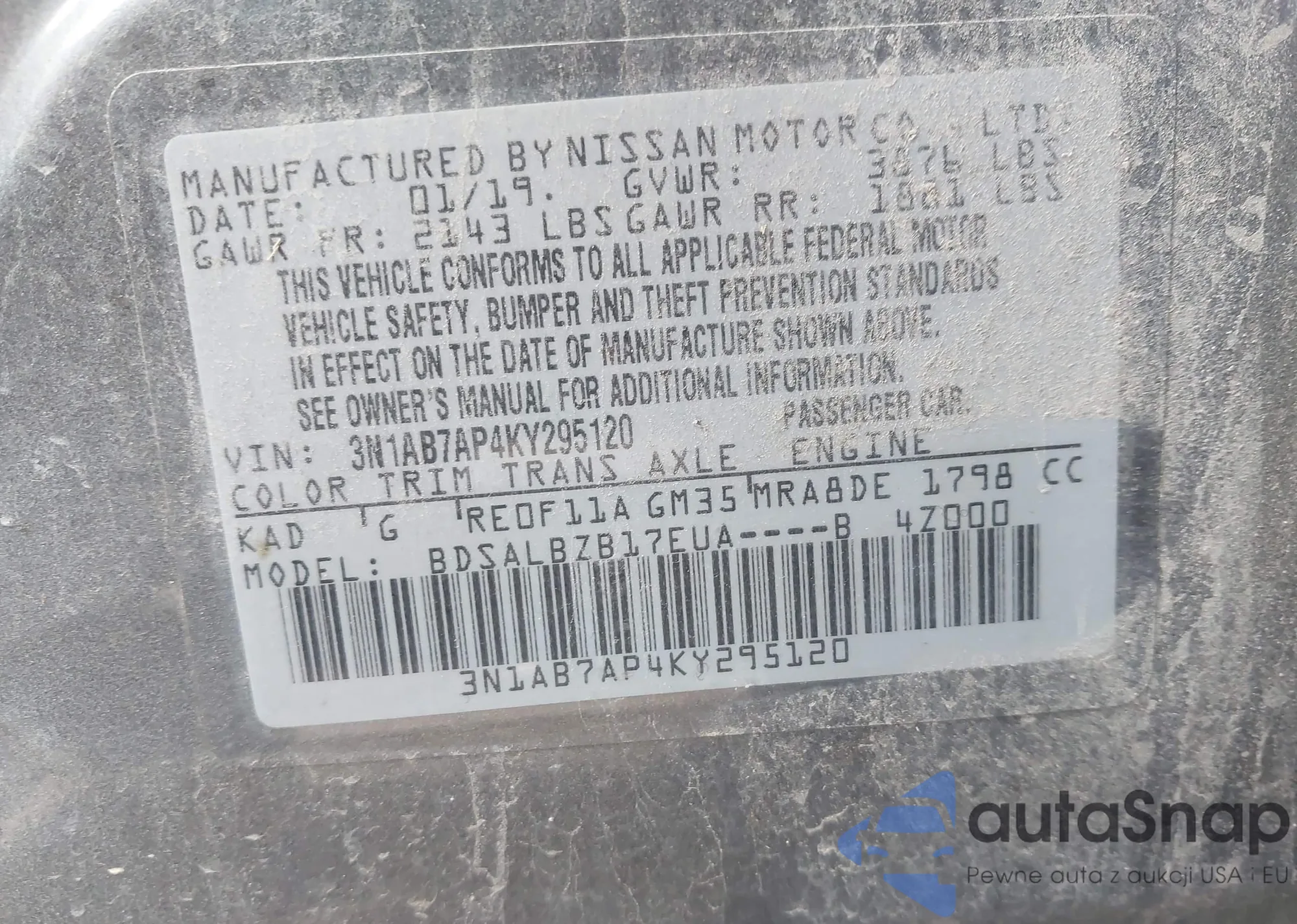 • VIN 3N1AB7AP4KY295120