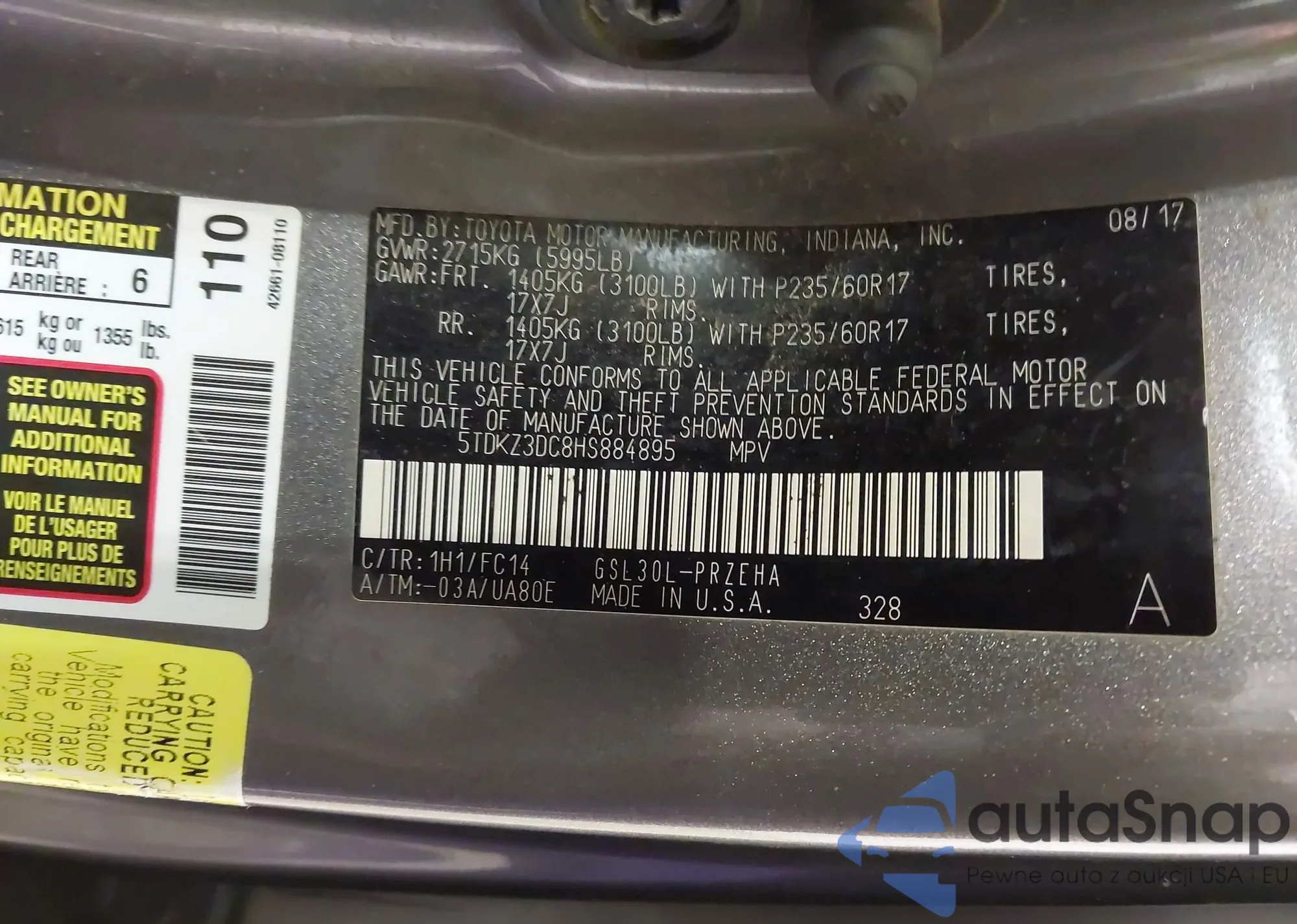 LOT: 44267486 VIN: 4T1BF1FK4HU701999