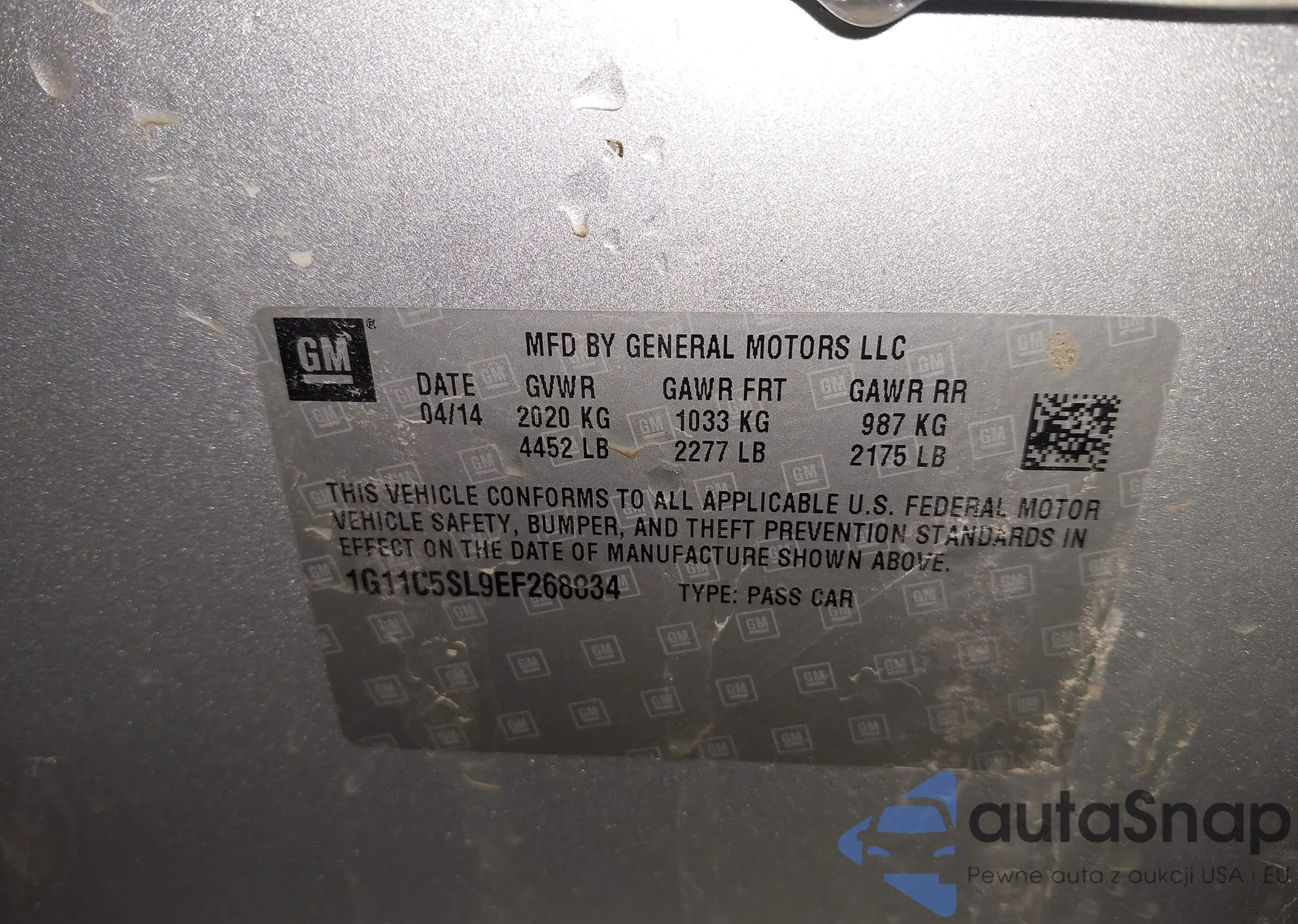 LOT: 44274002 VIN: 1G11C5SL9EF268834