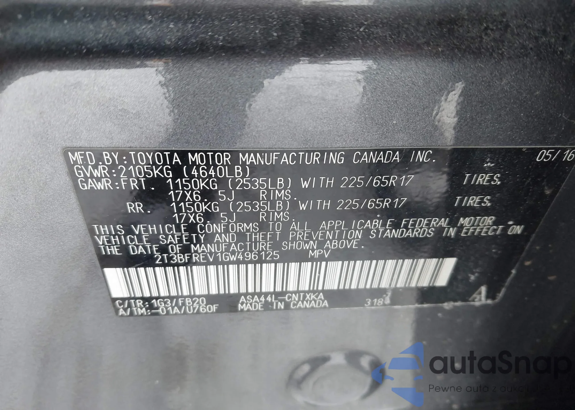 • VIN 2T3BFREV1GW496125
