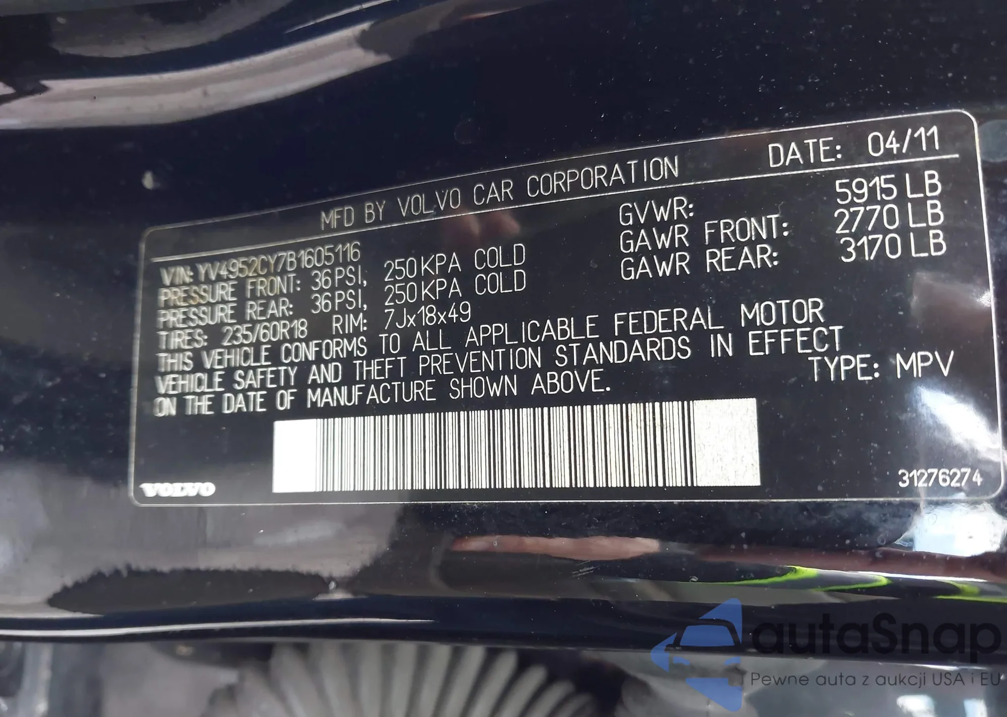 2011 Volvo Xc90 3.2 из США, поврежденный, VIN YV4952CY7B1605116